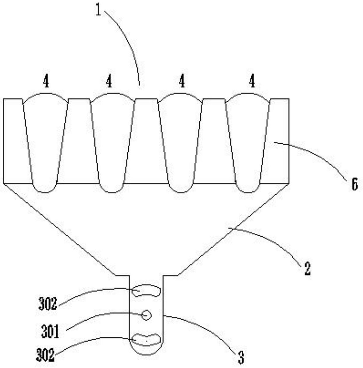 本实用新型公开了一种草坪机的定草机构,定草机构本体的主体后端中间位置设接柄,接柄设贯穿的连接孔,连接孔的前端和后端均设连接槽,主体的前端设操作区并排设若干V形的定草槽,定草槽的开口的大端朝外,底部为圆弧,本实用新型安装在草坪机前端,能把倾倒的较长的草在定草槽内小范围框定,并产生扶持力,便于旋转刀片把草打断,适合草原牧场过冬前储存草料收割。