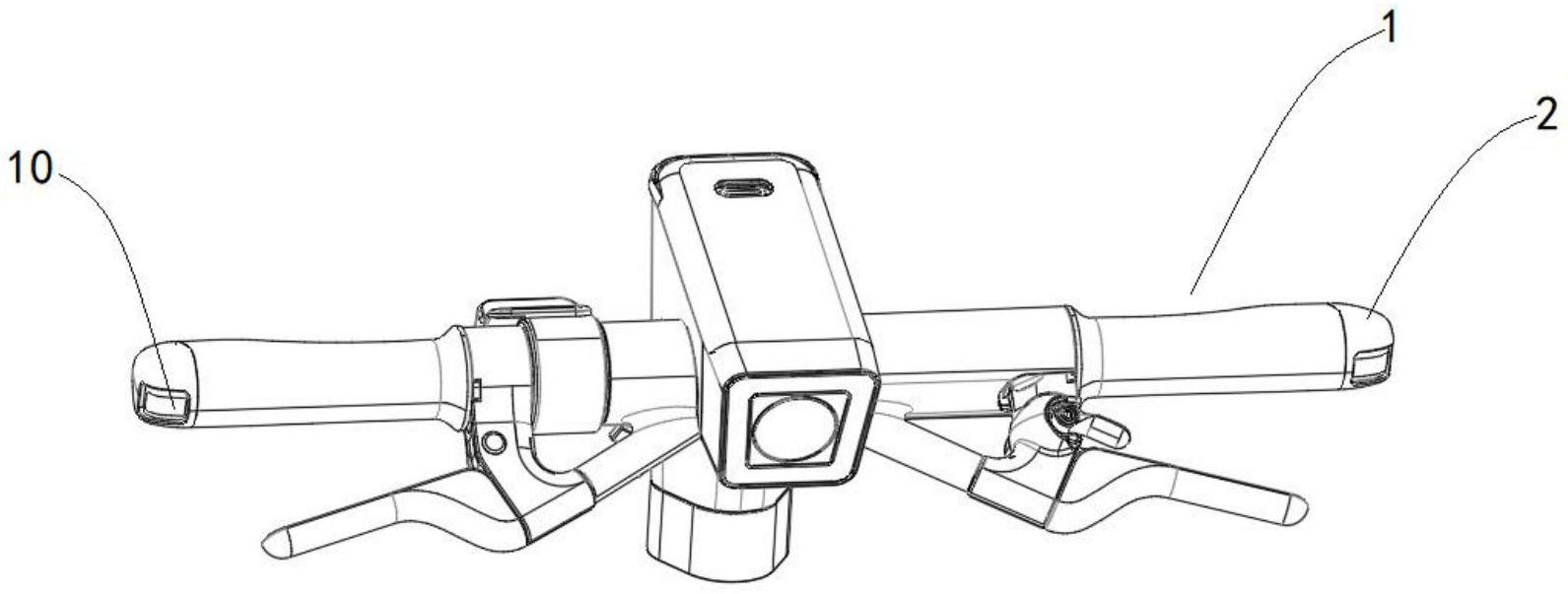 本实用新型公开了一种用于滑板车的转向警示机构。包括设置在滑板车的两个握把端部的转向灯组件,所述转向灯组件包括外壳、与外壳相连通的安装筒以及以及设置在外壳前侧的警示灯,所述安装筒套设在握把上,所述安装筒内部设有缓冲结构,所述缓冲结构位于握把的外侧。本实用新型具有提升滑板车安全性的优点。