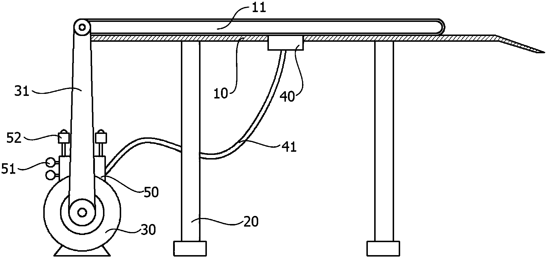 本实用新型提供一种柑果进料装置,包括固定架、支腿、电机、压力传感器和控制器,由电机驱动所述传送带运动,压力传感器固定设置在固定架上并与所述传送带相贴合,所述压力传感器用于检测由所述传送带所输送的柑果的当前重量值并将所述当前重量值发送至所述控制器,所述控制器与指示灯和蜂鸣器电连接,由所述控制器控制所述指示灯和所述蜂鸣器工作,其中,若所述控制器确定所述当前重量值大于或等于重量阈值时,既当前所输送的待加工柑果过多,则所述控制器控制所述指示灯和所述蜂鸣器工作,进而提示操作人员当前待加工柑果较多,需进行相应调整工作,以防止对后续的加工设备造成加工压力,保证柑果加工的顺利进行和加工效率。