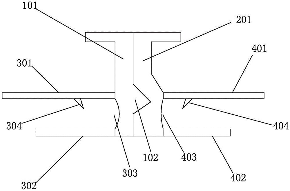 本实用新型公开了一种箱包铝框条,其技术方案要点是所述第一契合板上设有第一齿牙,所述第一齿牙与第一契合板形成第一锐角,第一锐角角度为60度‑90度,所述第一锐角的开口方向朝向左抵触杆,所述第三契合板上设有第二齿牙,所述第二齿牙与第三契合板形成第二锐角,第二锐角角度为60度‑90度,所述第二锐角的开口方向朝向右抵触杆,本实用新型目的在于提供一种便于快速安装的铝框条。