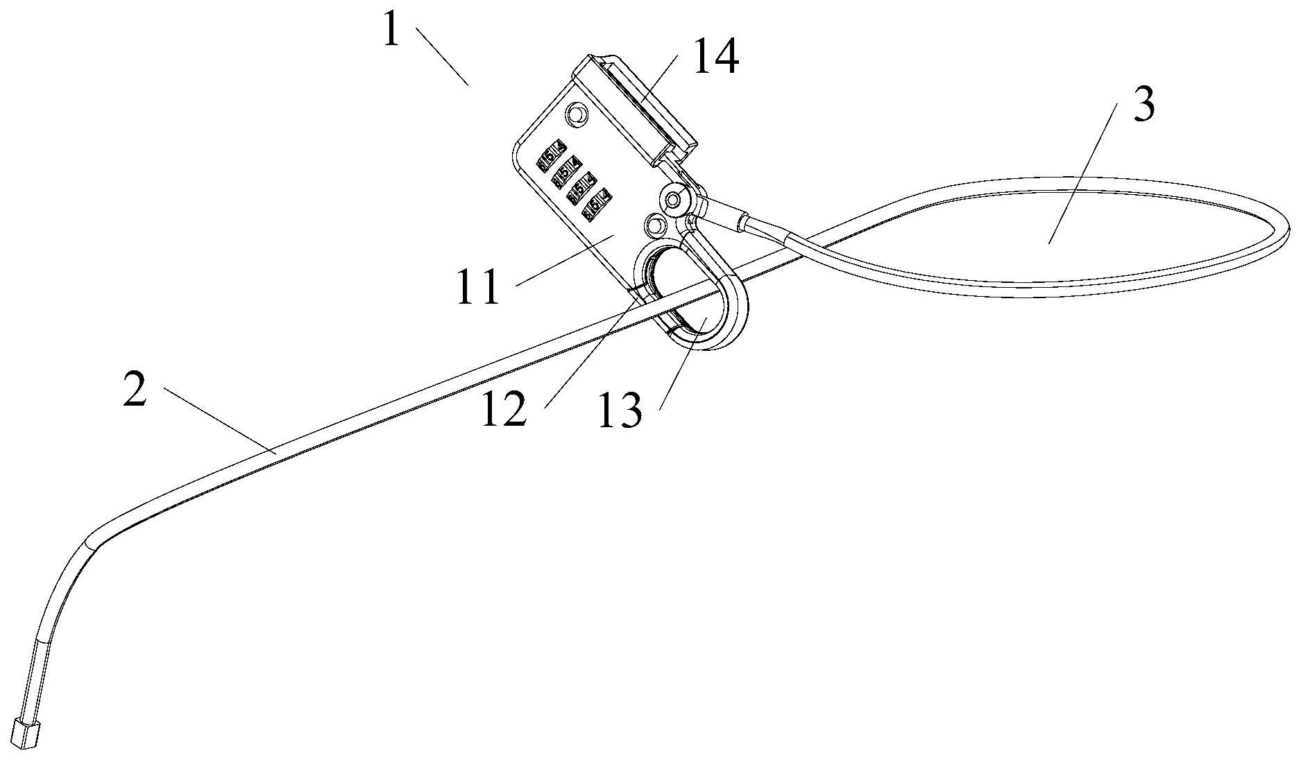 本实用新型提供了一种车用锁定装置及具有该装置的车体和车辆,涉及车体配件技术领域,主要目的是解决传统的车锁独立设置、使用不便的问题,提供一种能够设置在车体上的锁定装置。该车用锁定装置包括锁定件和锁线,所述锁定件可拆卸设置于车体上,包括锁体和锁梁,所述锁体和锁梁之间形成能供所述锁线穿过的限位空间,当所述锁定件处于解锁状态时,所述锁线能相对于所述限位空间进出;所述锁线的两端分别与所述锁定件和所述车体固定连接,当所述锁定件在外力拉动下脱离所述车体时,所述锁线能经所述限位空间与所述锁体相连,此时所述锁线能围合形成锁定空间。