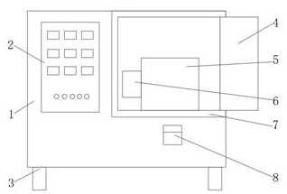 本实用新型公开了一种小米加工用微波杀菌装置,包括装置主体,所述装置主体的前端外表面设置有控制面板,所述装置主体的前端外表面开设有炉柜与出料口,且炉柜位于出料口的上侧,所述炉柜前端的内壁设置有柜门,所述炉柜的内部设置有容器,且容器的内部可拆卸连接有搅拌机构,所述装置主体的下端外表面设置有四个支脚。本实用新型所述的一种小米加工用微波杀菌装置,通过设置的搅拌机构,在小米的杀菌过程中,有效的使小米的杀菌更加均匀,间接的提高食品安全质量,且通过设置的第一固定夹具,在第一转轴与搅拌架的安装过程中,较于传统的直接焊接,结构简单,操作更加简便,进一步的提高使用效果,带来更好的使用前景。