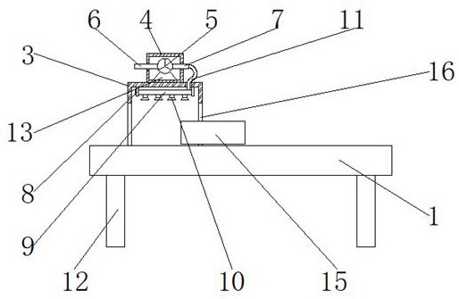 本实用新型公开了一种食品包装用传送装置,包括支撑板和传输带,所述支撑板顶部的左侧固定连接有降温箱,所述降温箱的顶部固定连接有固定箱,所述固定箱的内腔固定连接有风机,所述风机的左侧连通有进风管,所述风机的右侧连通有出风管,所述出风管的右侧延伸至固定箱的右侧,所述降温箱内腔顶部的两侧均固定连接有固定板,两个固定板之间固定连接有分流管,所述分流管的底部连通有喷头。本实用新型通过支撑板、传输带、降温箱、固定箱、风机、进风管、出风管、固定板、分流管、喷头和输送管的配合使用,能够使输送装置具备快速降温的功能,能够有效的防止食品包装袋烫伤工作人员,给人们的使用带来了方便。