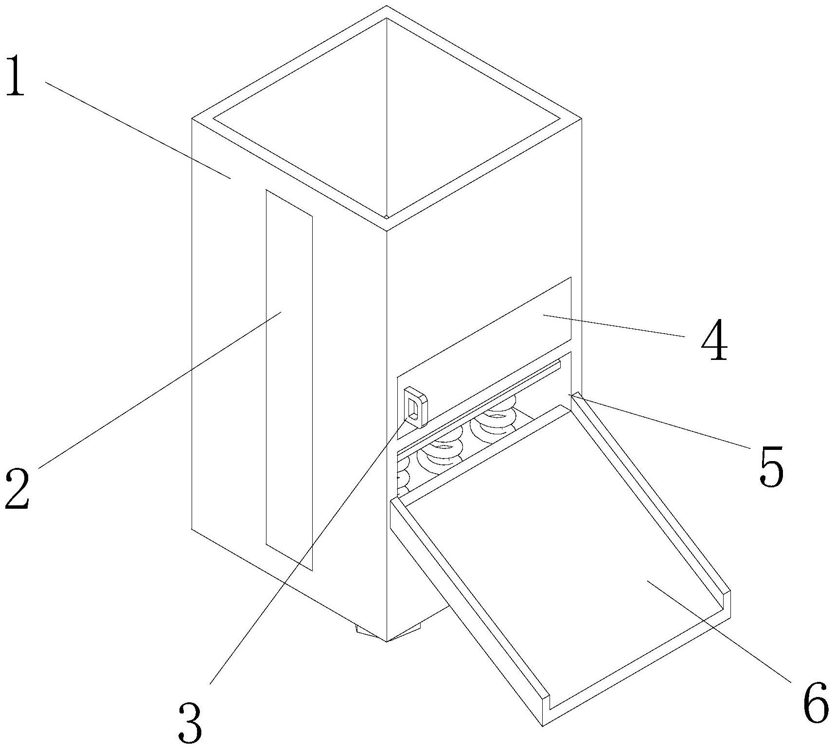 本实用新型公开了一种用于保健茶的内外袋包装机的外袋成型器,涉及保健茶技术领域,包括输送壳体,所述输送壳体的内壁设置有固定板,所述固定板的顶部固定连接有多个承重弹簧,所述承重弹簧的顶部固定连接有支撑板,所述输送壳体的一侧开有第一出料口和第二出料口,所述第二出料口位于第一出料口上方,所述第二出料口的一侧铰接有活动门,所述活动门的一端一侧处固定连接有把手。本实用新型其优点在于便于对内袋中茶叶数量较少和无茶叶的产品进行分离。
