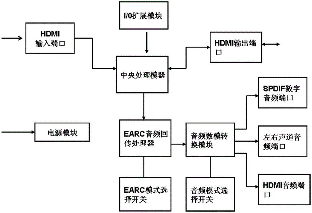 本实用新型公开了一种音频提取器,包括电源模块、与电源模块相连的中央处理器、EARC音频回传处理器、音频数模转换模块和I/O扩展模块及HDMI信号输入模块、HDMI信号输出模块、EARC模式选择开关和音频模式选择开关,中央处理器分别与EARC音频回传处理器、HDMI信号输入模块、HDMI信号输出模块、音频数模转换模块、I/O扩展模块、音频模式选择开关、EARC模式选择开关相连接。本实用新型采用自有内嵌式音频信号声画同步校正软件技术与最新32位内嵌式处理器技术,将各种HDMI输入源的音频信号分离出来传送到多个音频目的地,为未来的家庭影院互连解决方案实现无损的音频质量。