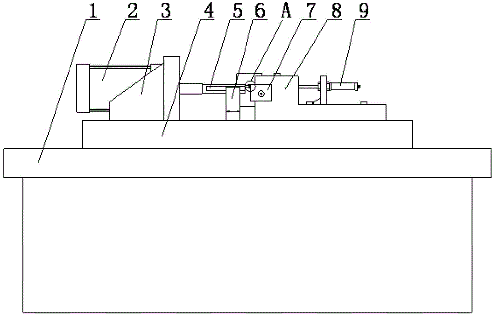 本发明涉及一种手风琴贝司机顶片铆豆装置,其特征在于:由工作台、操作板、顶片固定机构、顶片定位机构及按键豆铆合机构构成,在工作台上安装有操作板,在操作板上依次安装有顶片固定机构及顶片定位机构,在顶片固定机构及顶片定位机构的中后部安装有按键豆铆合机构。本发明结构设计科学合理,具有劳动强度小、连接效率高、操作容易、连接牢固、使用寿命长、连接质量佳、废品率低、成本低、易于实现等优点,是一种具有较高创新性的手风琴贝司机顶片铆豆装置。