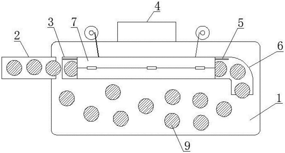 本实用新型公开了一种自动化粉皮加工装置,包括水浴池与传输机构,水浴池中设置有加温成型槽,加温成型槽的进口端与传输机构对应,加温成型槽中的水温通过温控设备进行加热恒定,加温成型槽中设置有振动机构,该加温成型槽的出口端连接有过渡槽,过渡槽导向至水浴池中;振动机构包括振动架、第一驱动电机以及第二驱动电机,振动架位于加温成型槽中,第一驱动电机与第二驱动电机的转轴上均连接有转盘,转盘与振动架之间活动连接有驱动杆。本实用新型能够代替传统的人工粉皮制作,大大提高了工作效率,而且通过振动机构能够解决人工触碰高温铁盒的问题,对人手起到很好保护作用,整体结构简洁实用,造价成本低,具有较为广阔的市场前景,便于推广。