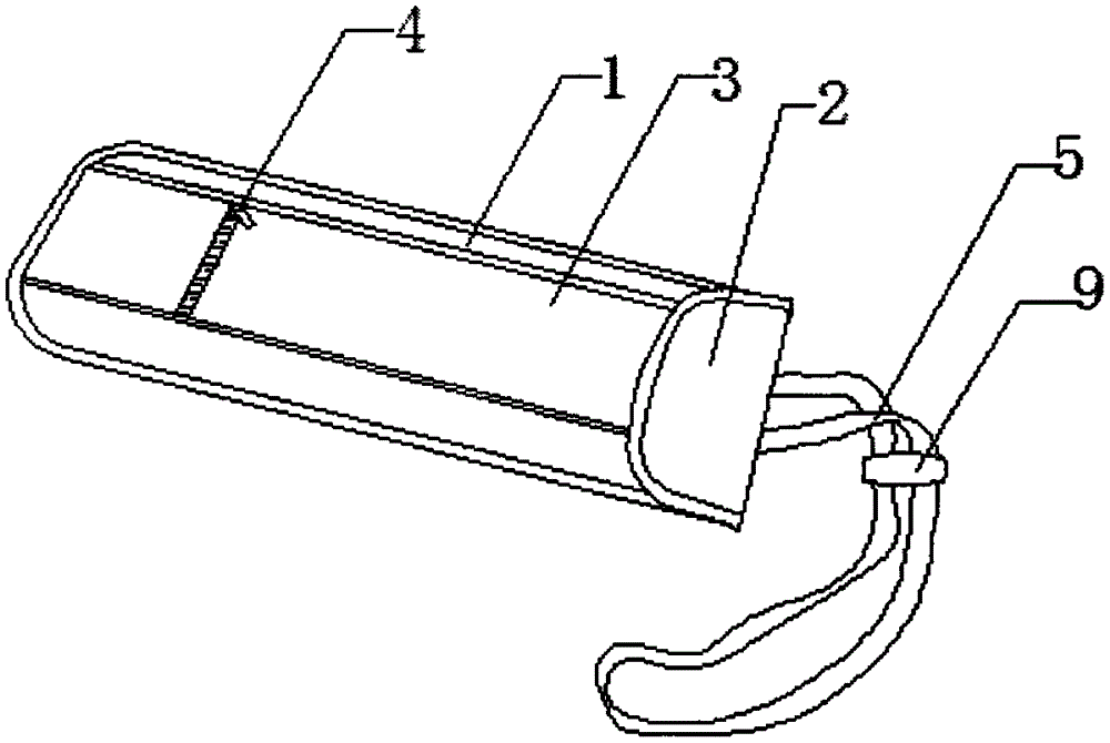 本实用新型公开了一种雨伞套,包括套袋,所述套袋由一体缝制的上层和下层构成;所述上层和下层中间形成有插兜;所述上层表面设置有储物袋;所述储物袋上安装有拉链;所述下层内侧及储物袋外侧分别设置有尼龙钩带和尼龙绒带;所述下层背面设置有网格;所述下层背面于网格的一端固定有拉绳;所述拉绳上套接有活动扣。本实用新型的雨伞套,在上层表面设置有储物袋,用于存放钥匙等杂物,便于使用者在下雨天存放和取用钥匙;在上层和下层内侧均设置有吸水棉垫,用于吸收雨伞上的雨水;将雨伞折叠后放入插兜中,将下层向上折叠使得下层内侧设有尼龙钩带与储物袋外侧设有的尼龙绒带粘连固定,保证雨水不会渗漏出插兜外侧,使用方便,且功能多样。