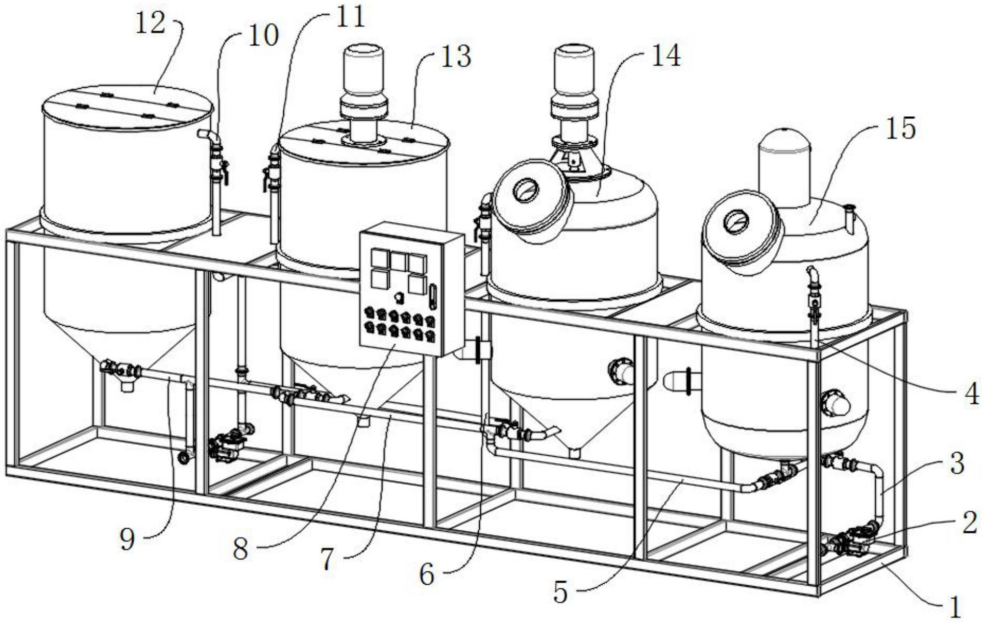 本实用新型公开了一种用于乳制品加工的储存装置,包括机架、冷藏机构、杀菌机构、冷却机构、储存机构,所述机架上侧依次设置有所述冷藏机构、所述杀菌机构、所述冷却机构、所述储存机构,所述机架前侧设置有控制箱,所述冷藏机构上设置有冷藏管道,所述冷藏管道前侧设置有真空泵,所述真空泵前侧设置有冷藏输出管道,所述冷藏输出管道后侧设置有冷藏杀菌管道,所述冷藏杀菌管道一端上侧设置有杀菌冷却管道,所述杀菌冷却管道一端前侧设置有冷却储存管道,所述储存机构一侧设置有储存管道,所述储存管道另一侧与所述冷却机构通过冷却管道焊接连接。有益效果在于:结构简单易操作,实用性高,造价低。