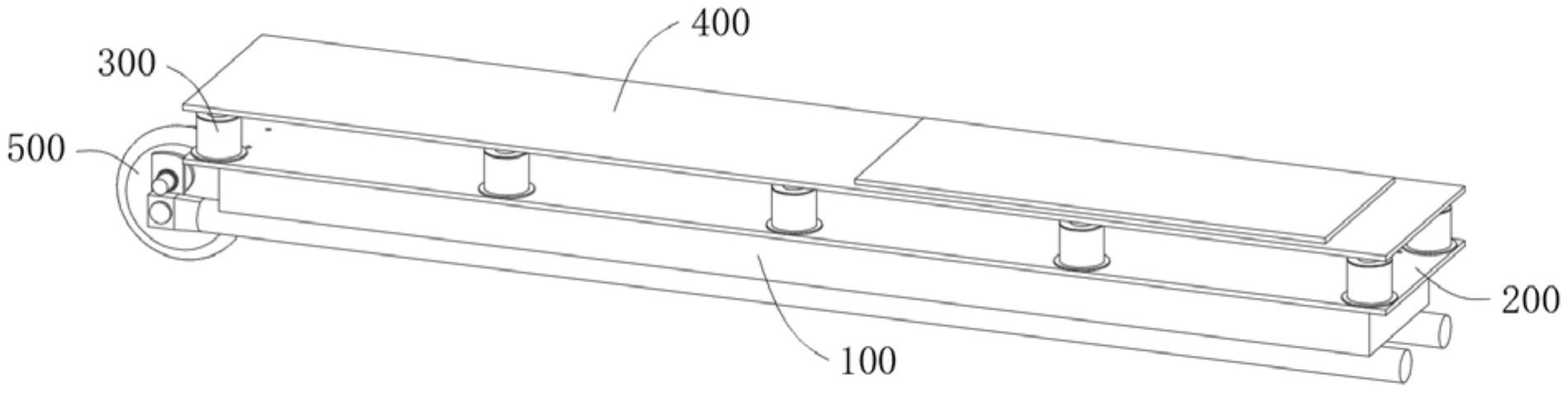 本实用新型公开了滑板车技术领域的一种可拆换滑板车踏板面板的滑板车,包括:支撑机构;盖板组件,所述盖板组件安装在所述支撑机构的顶部开口处;多个减震机构,多个所述减震机构沿着所述盖板组件的周长均匀安装在所述盖板组件的顶部;踏板组件,所述踏板组件通过螺母可拆卸安装在所述减震机构上远离所述盖板组件的一侧,所述踏板组件包括:踏板,所述踏板的底部与所述连接轴的顶部相接触;多个连接螺纹柱,多个所述连接螺纹柱沿着所述踏板的轴承均匀设置在所述踏板的底部边缘处,所述连接螺纹柱与所述第三安装孔相对应,本实用新型能够对滑板车的踏板面板进行拆装维护更换,便于对踏板面板的维护。