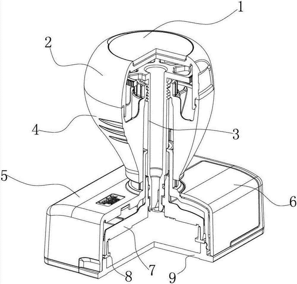 本实用新型涉及一种可调节高度的印章,其包括手柄、安装在手柄内的高度调节器、插装在手柄顶部的盖帽、上部插装在手柄下部内的下壳体、安装在下壳体内的支架、安装在支架内的卡圈以及插装在下壳体底部的底盖;在手柄腔内安装固定管,高度调节器安装在固定管内,高度调节器上端与固定管内侧螺纹连接,高度调节器下端与支架端部内侧固定;高度调节器向上带动支架和卡圈,调节印章垫的厚度,使章印的印迹更清晰,同时可方便的向中空的固定管管体内加印油,不用拆卸;使用本实用新新型不需频繁的更换印章垫,既保护了章体,同时也不污染所需盖章的介质。