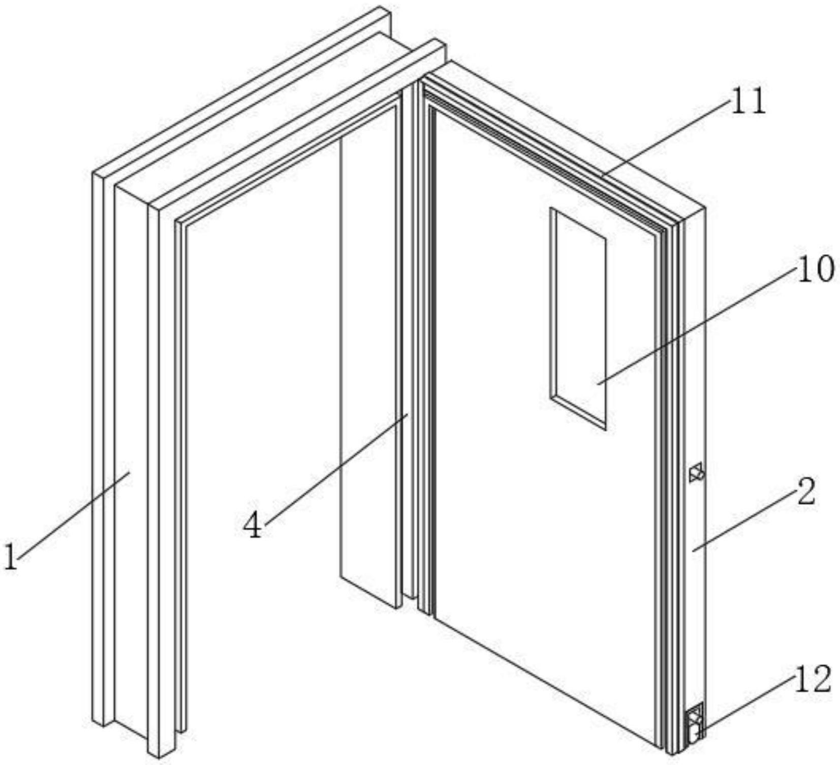 本实用新型公开了一种具有密闭功能的医用双包套玻璃门,包括双包套、门体和连轴合页,门体的一侧通过连轴合页铰接在双包套的一侧,双包套的前侧开设有与门体对应的倒U型门槽,门体上对应安装有防火锁组件,倒U型门槽的底壁开设有倒U型密封槽,该具有密闭功能的医用双包套玻璃门,结构合理实用,操作便捷,通过倒U型密封槽、磁吸条、倒U型容纳槽、倒U型密封条、弹性伸缩组件和电磁铁条以及自动密封器的共同配合作用,密闭隔离效果佳,可以确保对门体进行全方位的较好的密闭隔离,从而可以有效防止病毒通过空气传播,通过门体上的防火玻璃窗,具有有效的透视观察功能,透视观察性能好,便于进行隔离观察。