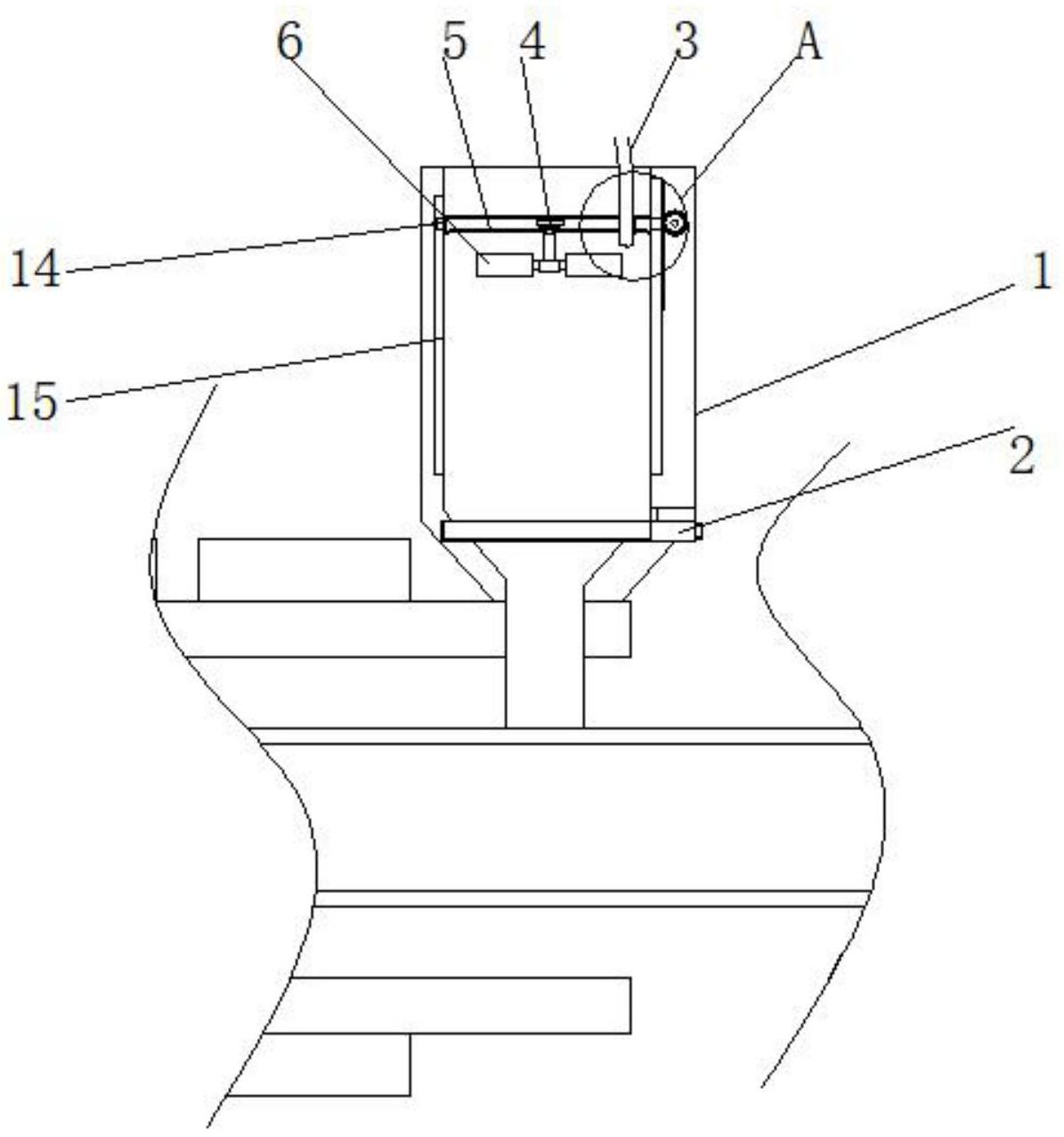 本实用新型公开了一种注塑机的注料结构,涉及塑料制造设备技术领域,包括进料口,所述进料口的内壁设置有导料管,所述导料管外壁设置有面板,所述面板的一端连接有连接柱,所述连接柱的外壁安装有压板,所述压板的内壁安装有一号电机,所述一号电机的输出端连接有搅拌叶,所述压板的一端连接有齿条,所述齿条的外壁设置有齿轮,所述齿轮的内壁设置有二号电机,所述压板的另一端安装有滑块。本实用新型通过设置滤网和把手,被输送的物料经过收纳腔的内壁,较大的杂质被收纳腔内壁设置的滤网阻隔,当一段时间后,关闭二号电机和一号电机,拉动把手,因此收纳腔被抽出,使得物料中不会含有杂质,对物件的成型不会造成影响。