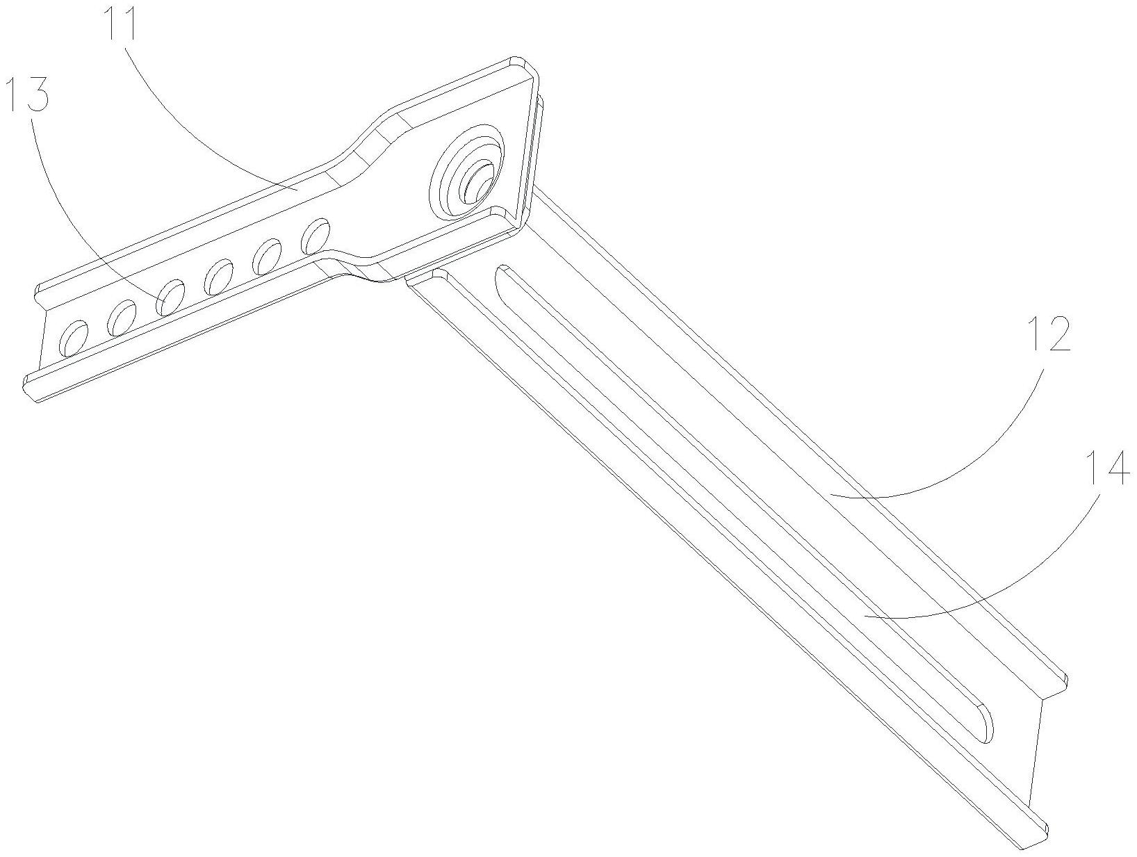 本实用新型涉及显卡支架技术领域,公开了一种可调节显卡用支撑架,包括架体,架体包括第一支架和第二支架,第一支架的一端与第二支架的一端可拆卸连接,第一支架用于与外部显卡连接,第二支架用于与外部机箱进行连接,第一支架和/或第二支架处设有调节空间;通过设置第一支架和第二支架,第一支架与外部显卡连接,第二支架与外部机箱连接,实现对显卡和机箱之间的支撑连接,同时通过在第一支架和第二支架处设置调节空间,通过调节空间对架体与显卡和机箱之间的位置关系进行调节,进而便于根据需求调节相应的安装高度和安装位置。