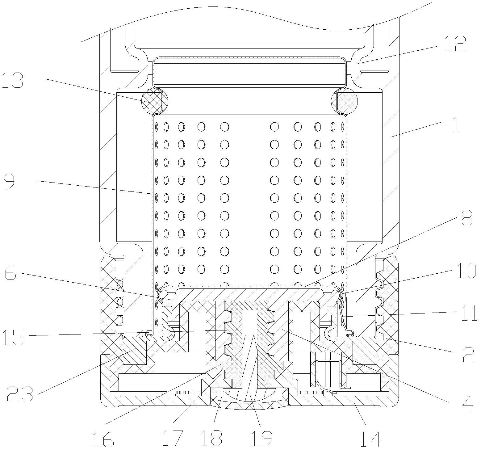 本实用新型公开了一种可拆卸式茶水分离杯,包括杯体,杯体顶端和底端分别可拆卸连接有顶盖和底盖,底盖上开有滑槽,调节螺旋盖底部的滑柱向下插入至滑槽中,调节螺旋盖外围固定包裹有回流盖,回流盖上可拆卸连接有滤网,杯体的内腔设有一圈向内凸出的分隔凸起,滤网底端为敞口端、顶端为封闭端,滤网底部的敞口端与回流盖可拆卸连接,滤网顶部的封闭端外侧设有分隔密封圈,分隔密封圈位于分隔凸起之下,底盖上设有能带动调节螺旋盖竖向移动的调节机构,由调节螺旋盖带动回流盖和滤网一起竖向移动,实现滤网上的分隔密封圈与分隔凸起的接触或脱离。本实用新型的优点:有效避免茶叶的夹杂或碾压,且方便拆卸清洗。