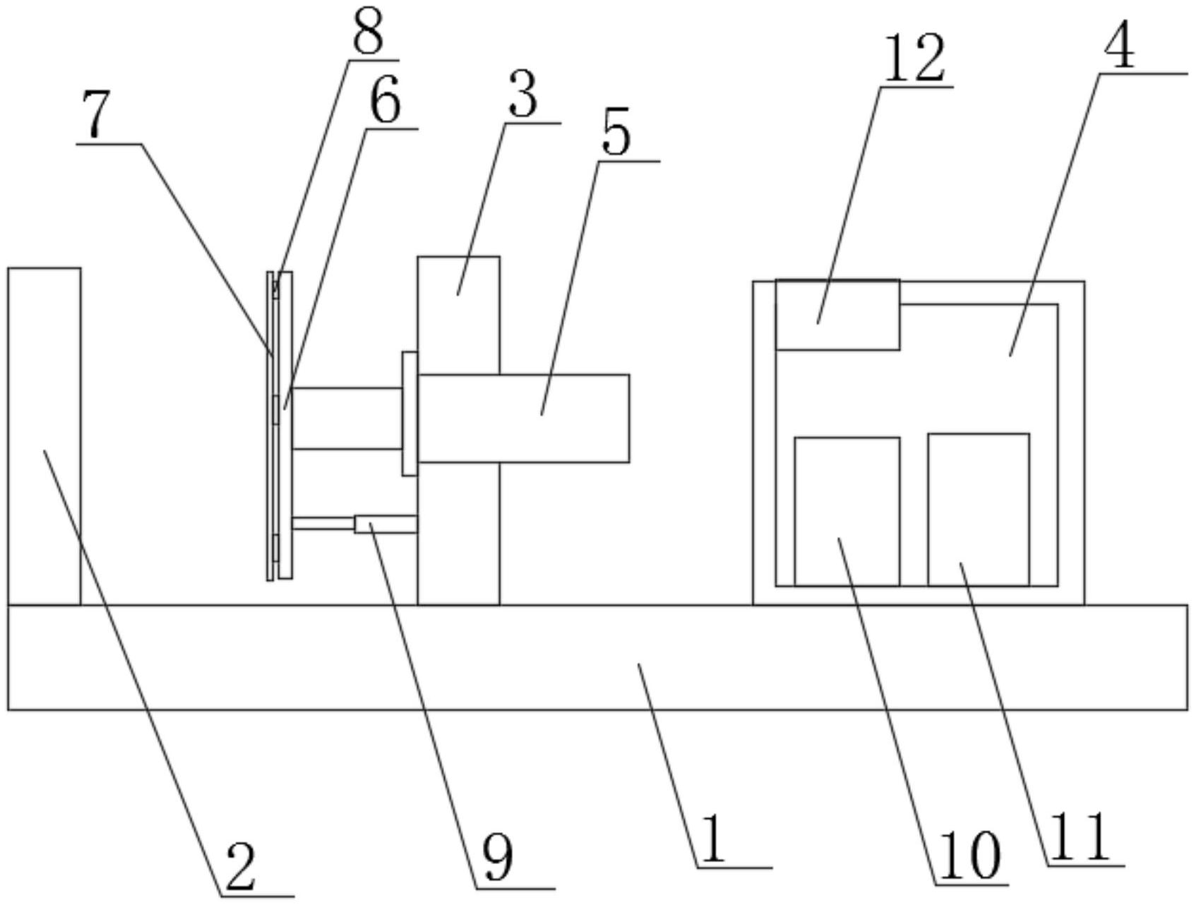 本实用新型涉及食品包装检测技术领域,尤其为一种冻干海产品微电脑包装纸箱抗压试验机,包括底座和从左往右依次间隔固定在底座上的受力板、安装板和设备箱。本实用新型中,通过设置受力板和安装板,且在安装板上设置朝向受力板的推板,该推板上设置有挤压板,且在挤压板和推板之间设置了压力传感器,将包装纸箱放置在受力板和安装板之间,通过电控液压推杆的推力可实现对纸箱抗压能力的检测,设置的位移传感器可检测推板的位移距离,当推板位移一定距离后,控制器控制液压控制器操作电控液压推杆收缩,设置的NFC模块可将由控制器提供的监测信息转换为NFC信号,操作人员只需使用带NFC功能的手机即可读取数据,方便检测数据的传输,适宜推广使用。