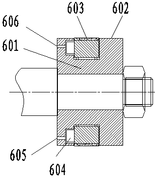 本实用新型涉及一种铸造圆管内孔打磨除渣装置,包括机架和推杆,所述机架上设有横向的导轨,所述推杆与导轨滑动连接,推杆的一端连接有用于除渣的刀具,推杆的另一端连接有螺纹驱动机构;所述刀具包括基体,基体前端为圆形的刀刃部,基体后端设有环形气腔,环形气腔设有与其连通的进风口和出风口,进风口用于与压缩空气管连接;环形气腔与刀刃部之间留设有转轴段,转轴段套设有环形砂轮,环形砂轮的后端连接有叶轮,叶轮位于所述环形气腔内。本方案的铸造圆管内孔打磨除渣装置可以在对内孔进行清渣的同时完成对内孔的打磨,可大幅提高工作效率,且可以提高内孔清理质量。