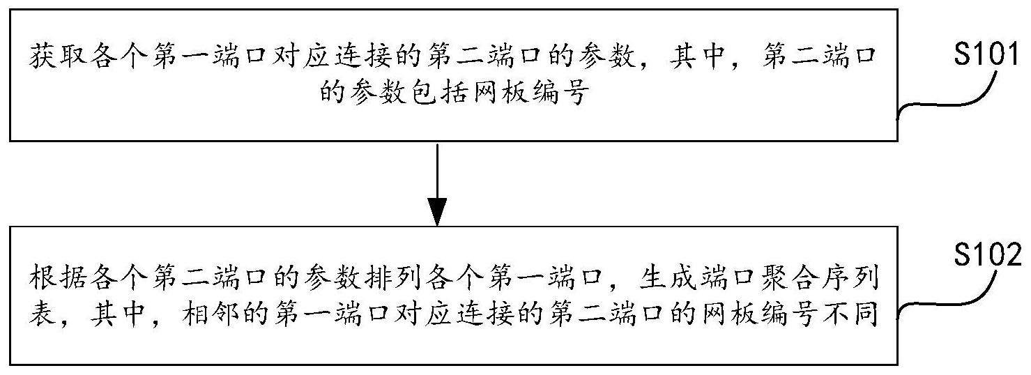 本公开提供一种端口聚合方法、装置、设备及存储介质,所述端口聚合方法用于在接口板进行端口聚合时生成序列表,所述接口板具有多个第一端口,每个第一端口均对应连接一个网板的第二端口;所述方法包括下述步骤:获取各个第一端口对应连接的第二端口的参数,其中,第二端口的参数包括网板编号;根据各个第二端口的参数排列各个第一端口,生成端口聚合序列表,其中,相邻的第一端口对应连接的第二端口的网板编号不同。接口板的各个第一端口间隔连接不同的网板,进而当接口板与网板间进行数据传输时,数据流量能够分流至不同的网板,实现负载均衡,避免造成丢包。