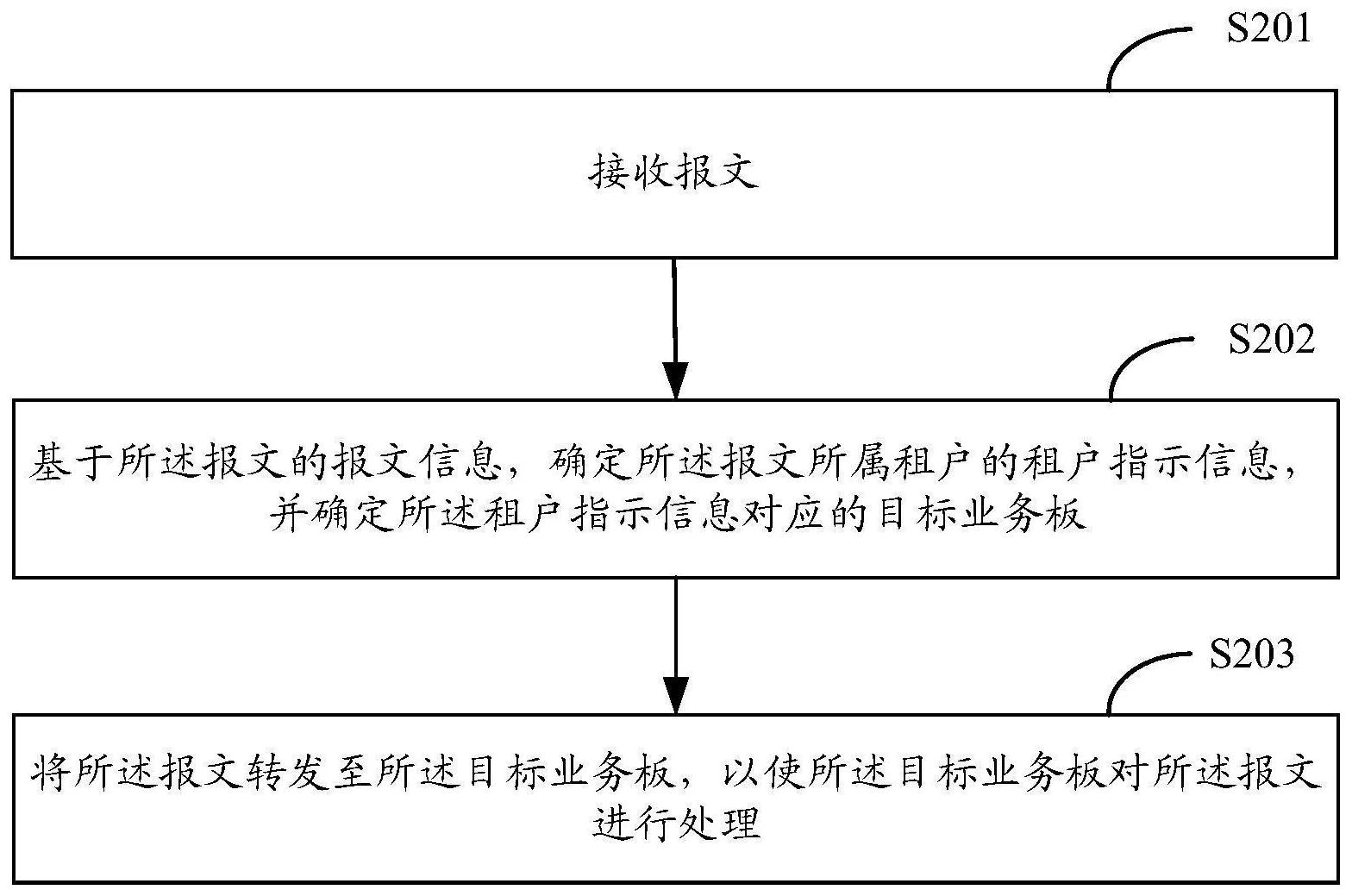 本申请提供一种报文处理的方法和装置。本申请中,框式设备建立了租户与业务板的对应关系,从而使得框式设备在接收到报文后,可以根据该报文所属的租户,将报文转发到对应的业务板上。因此,每个租户的流量被分发到固定的业务板上,从而可以实现基于租户的流量管理。