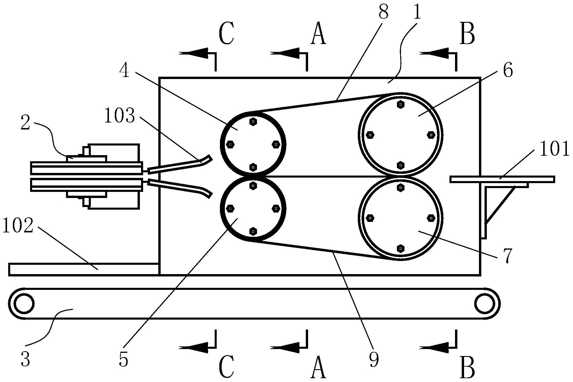 本发明涉及一种袋装食品紧实机,包括紧实机箱、缓冲压平装置、紧实装置和输送带,所述的缓冲压平装置位于紧实机箱中部;紧实装置位于紧实机箱左方;输送带位于紧实机箱下方;缓冲压平装置包括上主动缓冲传动组件、下主动缓冲传动组件、上从动缓冲传动组件、下从动缓冲传动组件、上压平带、下压平带、双电机连接套、平衡拉簧Ⅰ和两个平衡拉簧Ⅱ;缓冲压平装置能实现对包装袋进行压平的功能,并能达到减振和缓冲的功能;紧实装置能实现对袋装食品进行振实的功能。本发明具有设计合理和操作简单等优点,实现了机器替代人工的操作,减少人工劳动疲劳伤害,节省了人力资源,并提高了袋装食品的封口和装袋质量。