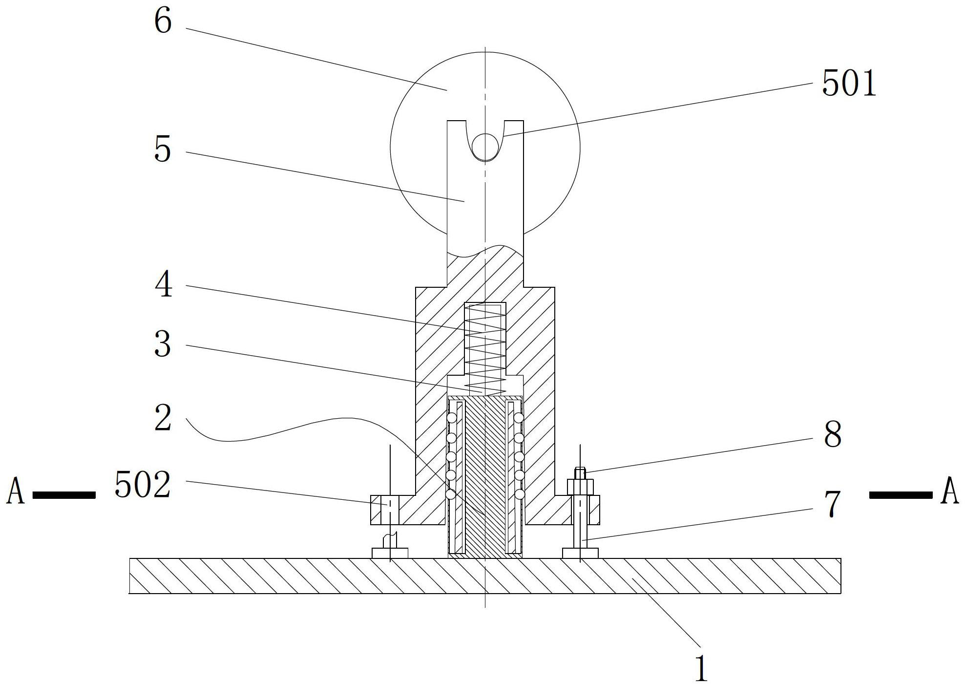 本发明提供一种设在传送带清洁车上的浮动吸水装置,包括底板,所述的底板上设有导向螺栓,所述的导向螺栓头部连接有螺母,所述的底板上对称固定有两个定位柱;所述的定位柱由柱体、涨紧套和滚珠组成,所述的涨紧套放置在柱体的内腔中,所述的滚珠位于涨紧套外圆面与柱体内腔表面之间;所述的定位柱上方焊接有导向柱;所述的导向柱外侧设置有压簧;所述的压簧外侧套有支座;所述的支座上方设有U型槽,其U型槽内放置有吸水滚柱,所述的支座外侧环形均布有通孔。本发明具有结构巧妙、控制方便和高度可调节等优点,能实现浮动的功能,有效的控制清洁车与传送带表面之间的相互位置和相互作用力。