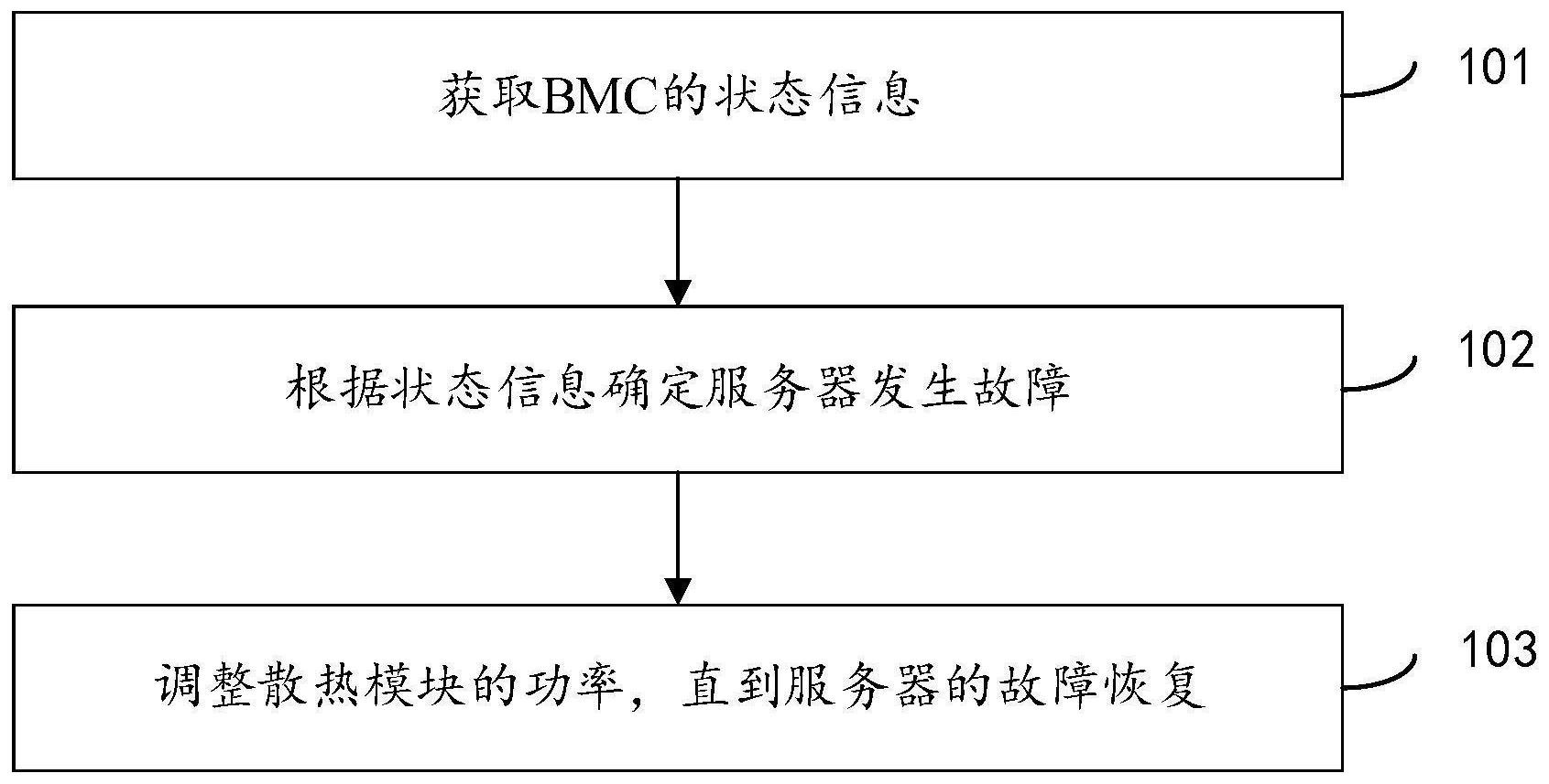本申请实施例涉及一种故障恢复方法、装置、电子设备和存储介质,包括:获取BMC的状态信息;根据状态信息确定服务器发生故障;调整散热模块的功率,直到服务器的故障恢复。通过本申请实施例获取BMC的状态信息,确定服务器处于故障状态后,由于服务器处于故障状态时无法读到服务器器件的温度,为避免服务器温度过高,提升散热模块的功率即增加风扇的转速,确保服务器温度正常,从而使得服务器故障能在短时间内自动恢复。
