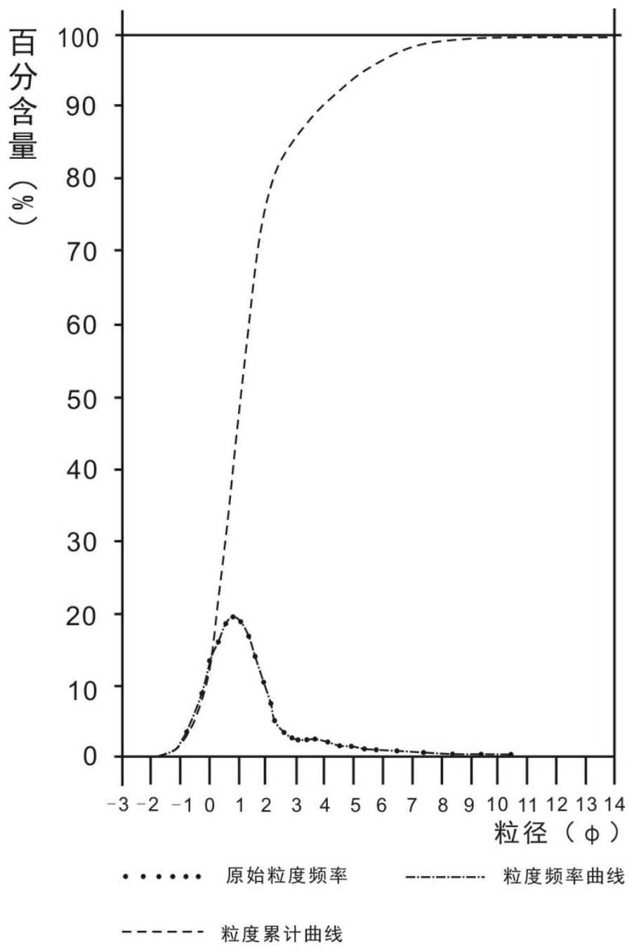 本发明公开了一种基于曲线拆解的粒度次总体识别方法:根据粒度分析测量数据绘制粒度频率曲线;对粒度频率曲线追踪,直至粒度频率曲线的最大值处;确定第一拟合曲线、第二拟合曲线、第三拟合曲线;不同拟合曲线的μ与σ2表征不同次总体的粒度大小和分选性;拟合曲线交点确定不同次总体的主导区;拟合曲线积分,获得不同次总体相对含量,确定不同次总体在粒度中的相对重要性;由不同次总体相关参数评价粒度特点,给出粒度曲线类型、粒度大小、粒度分选性特征参数,评价样本的粒度发育特征。本发明采用直角坐标系,基于曲线拆分的方法识别粒度次总体,利用定量参数描述粒度特征,避免了常规粒度分析方法中的误差,使粒度特征的描述更加准确。