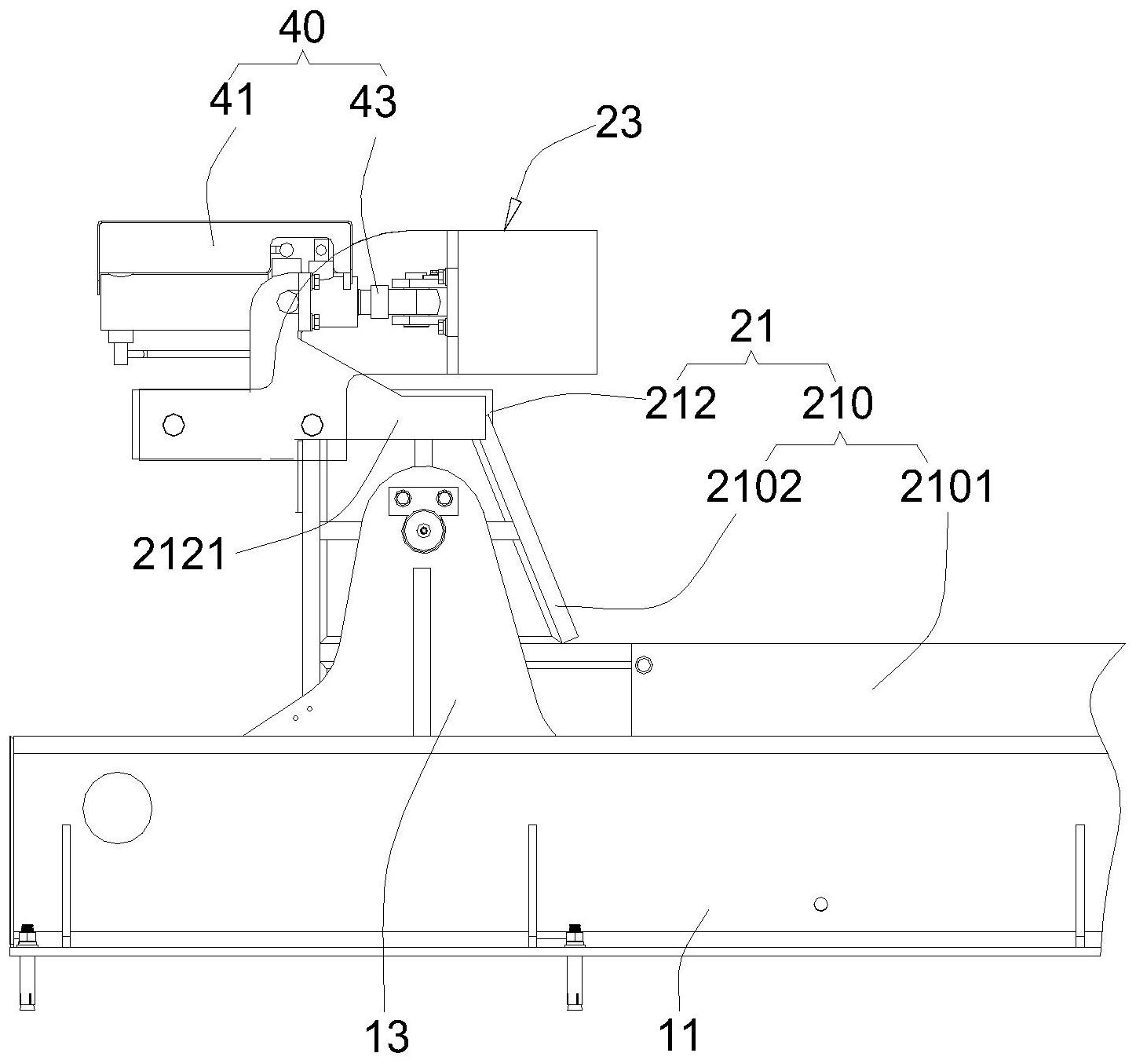 本发明涉及一种翻转支架包括翻转臂,包括臂体及固定件,固定件上开设有滑动槽;以及导向机构,包括载重件及导向组件;载重件包括滑动段及承重段,滑动段包括第一端及第二端;导向组件包括至少一组,每组导向组件包括连接轴及滑动块;滑槽包括上槽壁及下槽壁,滑动块绕对应连接轴轴线相对滑动段周向可旋转,并在承重段载荷时分别与下槽壁和上槽壁贴合。本发明翻转支架中第一端和第二端上滑动块在滑动段发生偏转的前提下亦能自适应的保持与下槽壁和上槽壁面与面贴合滑动,避免滑动块在滑动过程中被卡死,且减小滑动块和滑槽之间的磨损,延长翻转支架的使用寿命。