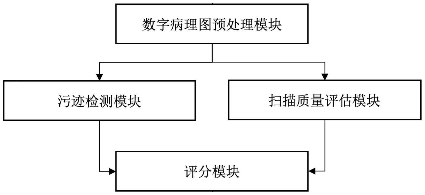 本发明提供了一种数字病理图像质量评价系统,其特征在于,包括:数字病理图像预处理模块;污迹检测模块;扫描质量评估模块;评分模块,计算最终有效区域,同时汇集数字病理图像预处理模块、污迹检测模块及扫描质量评估模块给出的各分项检测评分给出病理图质量整体评价。本发明提出了一种数字病理图像质量评价系统,对常规采集的医学病理图像进行统一质量评价,有效去除数字病理图像中无用信息,使医生更专注于有效的病理组织结构,为基于医学病理图像的学术研究提供了可靠的数据保障。