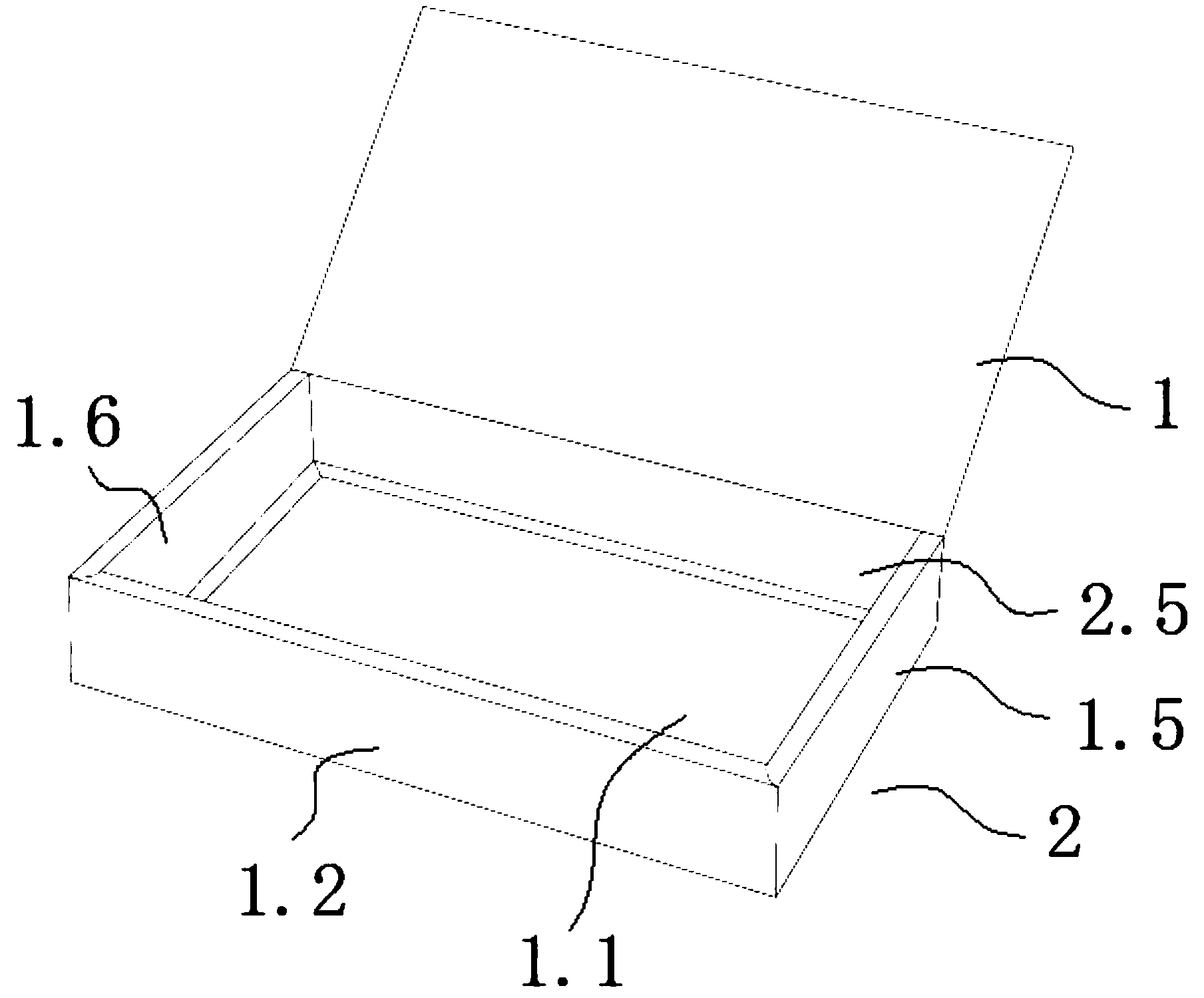 本实用新型涉及一种折叠纸盒,包括盒体和盒盖,盒盖与盒体连接,盒盖可折叠封盖盒体;盒体包括底面板、前面板、后面板、第一侧板和第二侧板,前面板置于底面板的前侧,后面板置于底面板的后侧,第一侧板和第二侧板分别置于底面板的两侧;前面板、后面板、第一侧板和第二侧板均与底面板连接;前面板、后面板、第一侧板和第二侧板均可折叠与底面板垂直;后面板远离底面板的一端与盒盖连接。相对现有技术,本实用新型前面板、后面板、第一侧板和第二侧板环绕底面板,并与底面板构成盒体;能使盒体和盒盖一次印刷而成,折叠时只需要一次折叠;能有效提升盒体和盒盖连接的稳固性,还不影响美观。