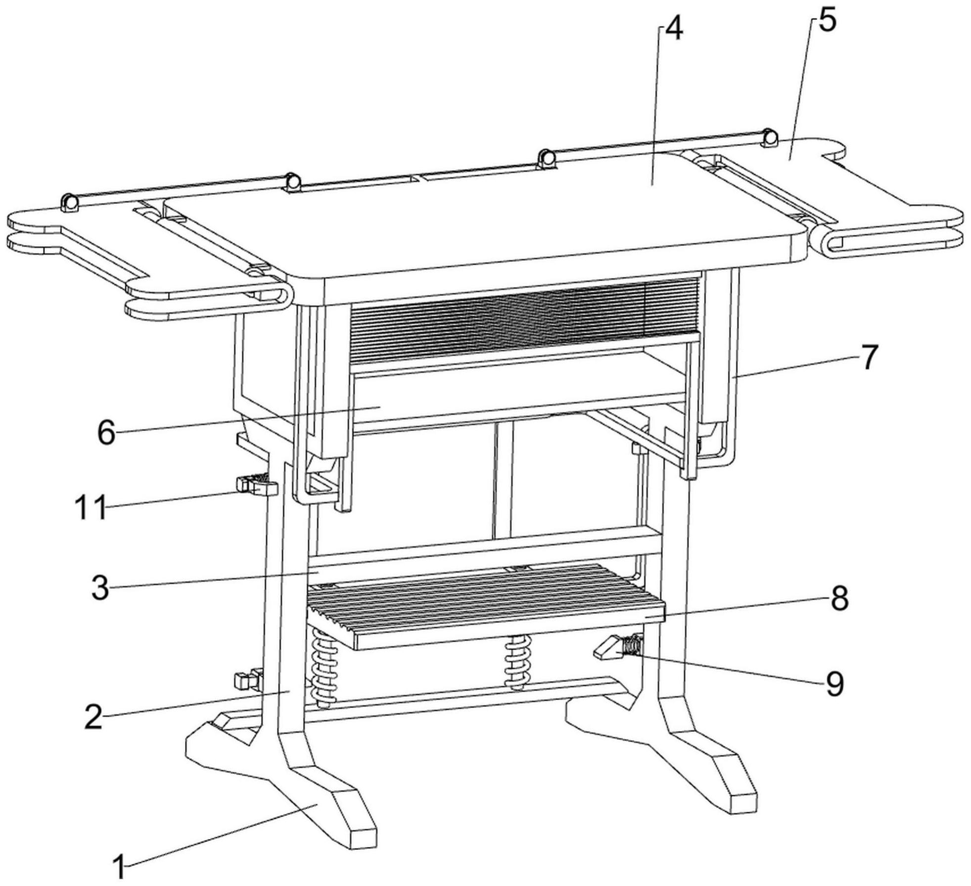 本发明涉及一种课桌,尤其涉及一种考试专用防邻桌抄袭课桌。本发明的目的是提供一种方便老师判断学生的知识掌握程度的考试专用防邻桌抄袭课桌。一种考试专用防邻桌抄袭课桌,包括有底座、支架、横杆、桌板、防窥机构和收纳机构,横杆两侧均设有支架,支架底部均设有底座,支架顶部之间连接有可放置试卷进行答题的桌板,桌板上设有可防止邻桌抄袭的防窥机构,支架一侧之间连接有收纳机构。在需要考试时,便可将防窥板向上转动呈竖直状,防窥板便可挡在桌板的左右两侧,便可挡住想要抄袭者的视线,使抄袭者无法看到其他人的试卷,如此便可防止作弊,方便老师判断学生的知识掌握程度。
