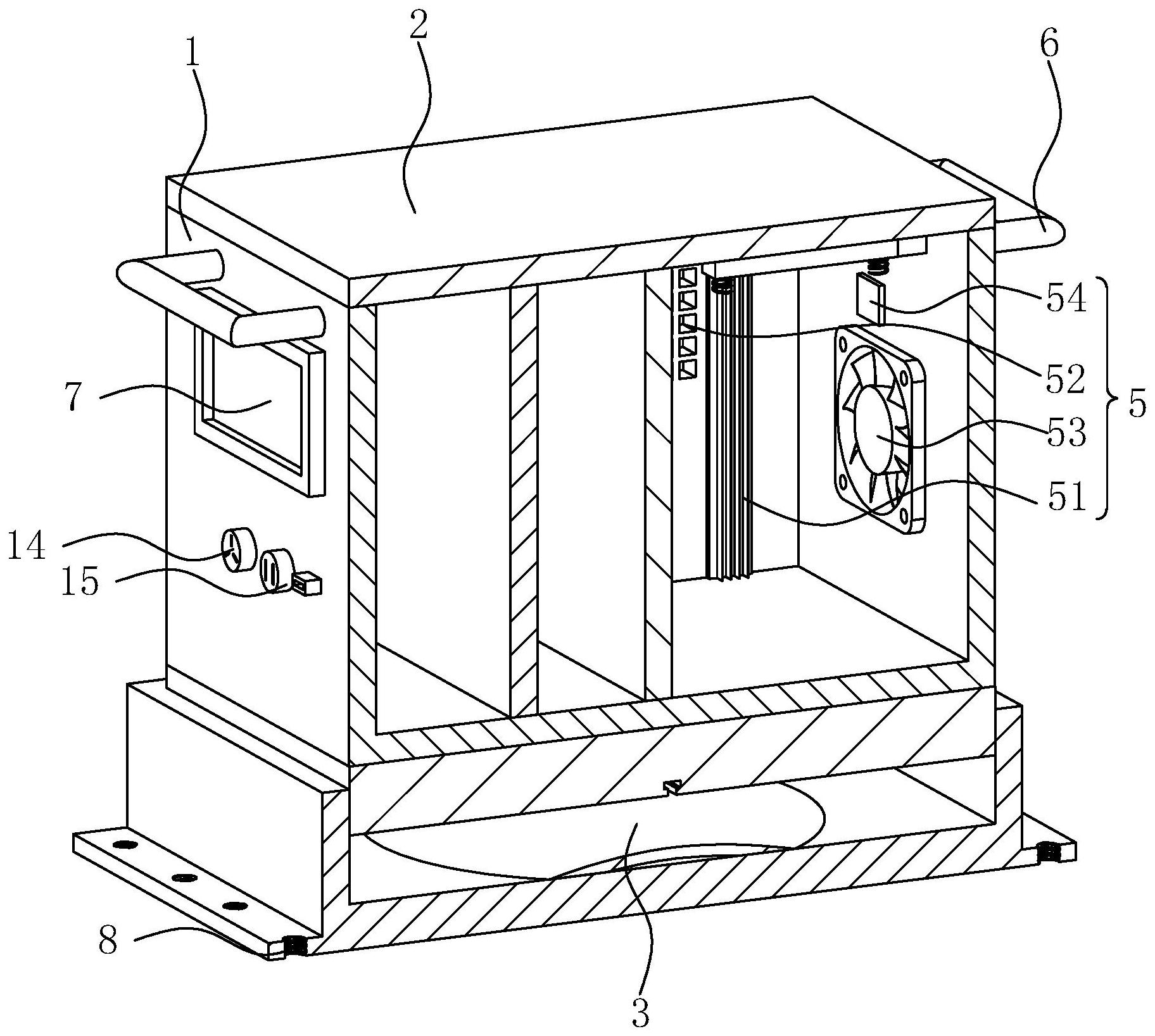 本申请涉及一种车载式碳基电容储能电源箱,涉及储能的技术领域,其包括箱体,所述箱体顶部铰接有顶盖;所述箱体内部设置有电容腔和控制腔,所述控制腔内固定安装有控制器,所述箱体上固定安装有多个插头,所述箱体上固定安装有充电端口,多个所述插头和所述充电端口均与所述控制器电连接;所述箱体底部固定连接有缓冲机构。本申请具有缓冲外力冲击,避免车载式碳基电容储能电源箱内部元器件以及元器件之间的连接被破环,保证车载式碳基电容储能电源箱的正常使用的效果。
