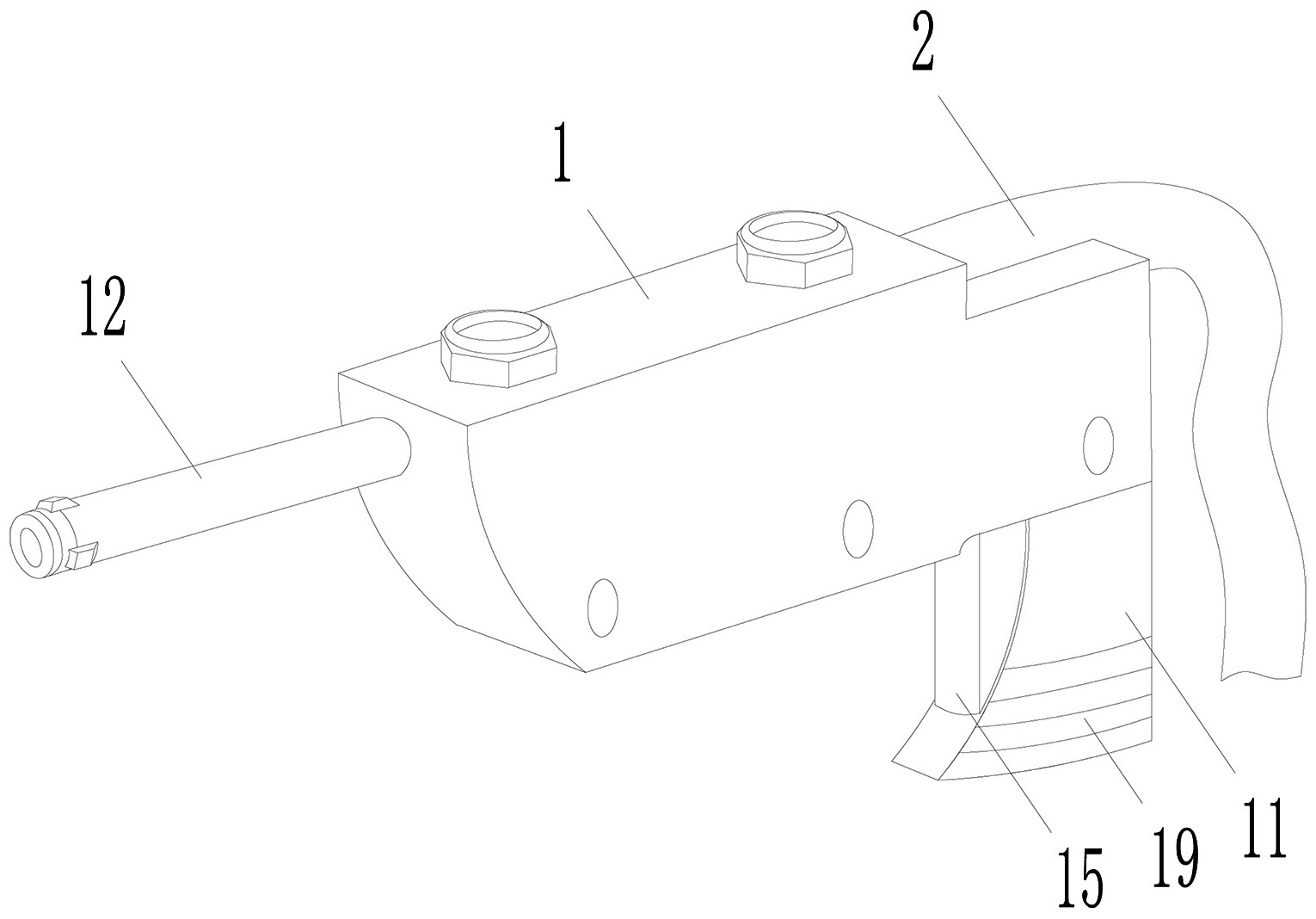 本实用新型具体涉及一种抗震耐高温ABS组装定位胶的喷涂装置,包括设置有开关的枪身,枪身前端设置有贯穿枪身的枪管,枪管尾端连接有料管,料管上设置有与开关连接的驱动阀门;枪管内套接有导热管,导热管前端与枪管前端可拆卸连接,导热管尾端与料管相通;枪身内设置有环绕枪管中部的加热装置,加热装置与导热管相接。本实用新型喷涂装置内设置有导热管,能够加热溶胶,防止溶胶提前凝固。所设导热管为可拆卸结构,当需要清洗时,只需要将导热管拆下即可,避免了复杂操作。