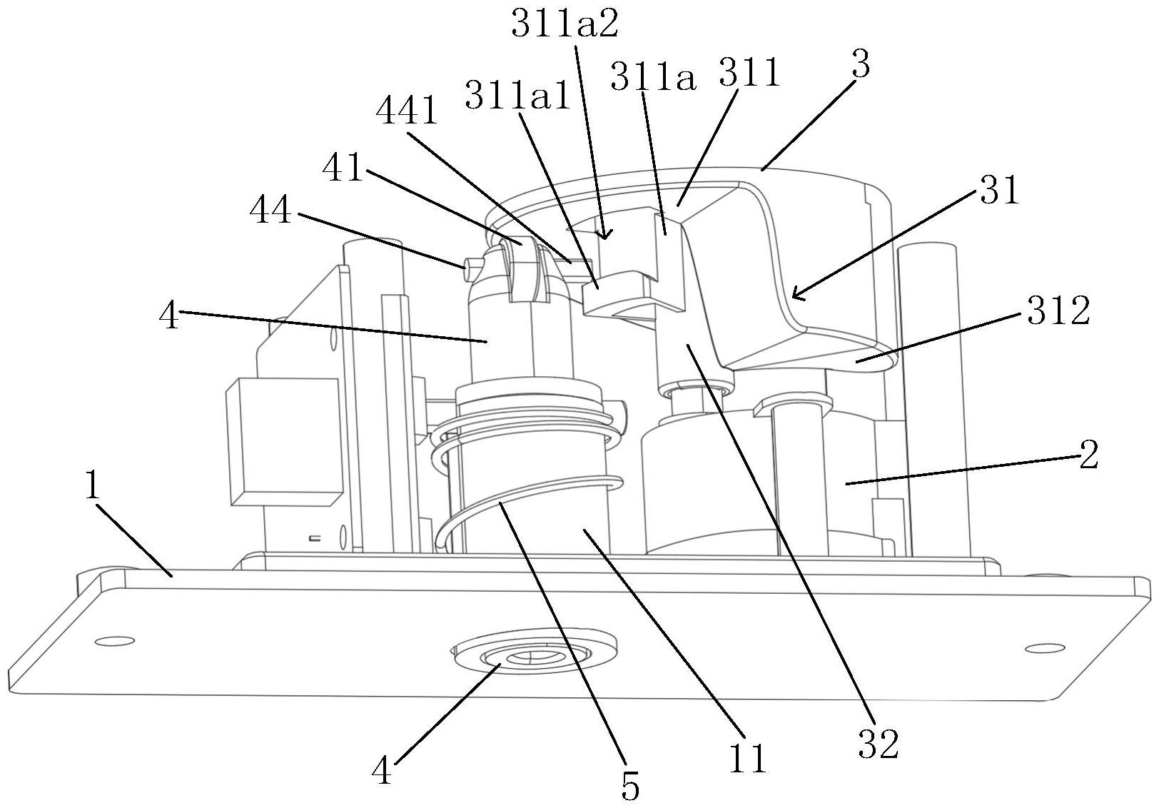 本实用新型属于锁具技术领域,涉及一种锁具及柜体。锁具包括安装座、可转动曲面凸轮和可伸缩锁栓;可转动曲面凸轮能够转动地安装在安装座中,可伸缩锁栓可伸缩地穿设在安装座中,且可转动曲面凸轮的轴线和可伸缩锁栓的轴线相平行,可转动曲面凸轮上设置有高低曲面,高低曲面包括低区曲面以及可过渡至低区曲面的高区曲面;可伸缩锁栓的一端可移动地设置于高低曲面上;在驱动力驱动下,可伸缩锁栓上抵顶在高低曲面上的一端与高低曲面之间能够产生相对转动,且高区曲面推动可伸缩锁栓伸出;低区曲面与可伸缩锁栓相对时可伸缩锁栓能够缩回;可转动曲面凸轮上设置有阻挡部,可伸缩锁栓上设置有限位部,可伸缩锁栓缩回解锁时,限位部与阻挡沿相互阻挡。