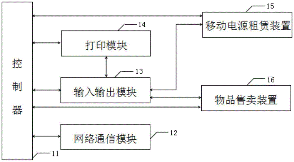 本实用新型适用于移动电源租赁领域,提供了一种多功能移动电源租赁设备,包括:控制器和分别与所述控制器电连接的网络通信模块、输入输出模块和移动电源租赁装置,所述多功能移动电源租赁设备还包括分别与所述控制器电连接的打印模块和/或物品售卖装置;输入输出模块还分别与移动电源租赁装置、打印模块和物品售卖装置电连接。本实用新型无需到不同地点就能达成不同目的,高效快捷。