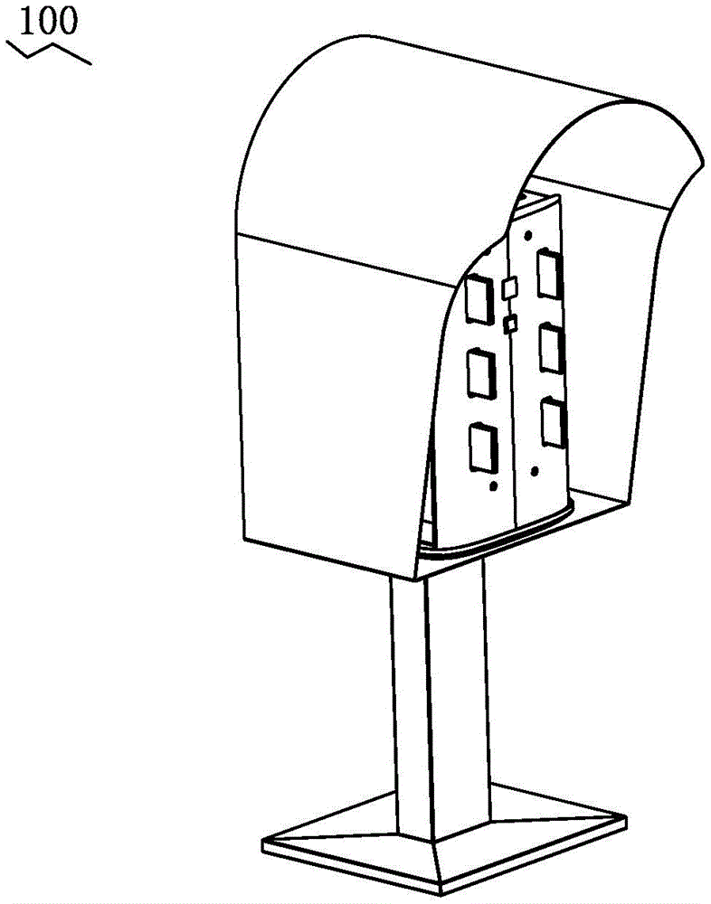 本实用新型涉及一种防水共享充电设备,用于供移动电源充电及供用户租借、使用或归还移动电源。防水共享充电设备具有防水结构,带有防水功能,可防止充电设备遭受雨淋而导致内部渗水,防止设备发生电路故障,确保设备的用电安全及正常运行。