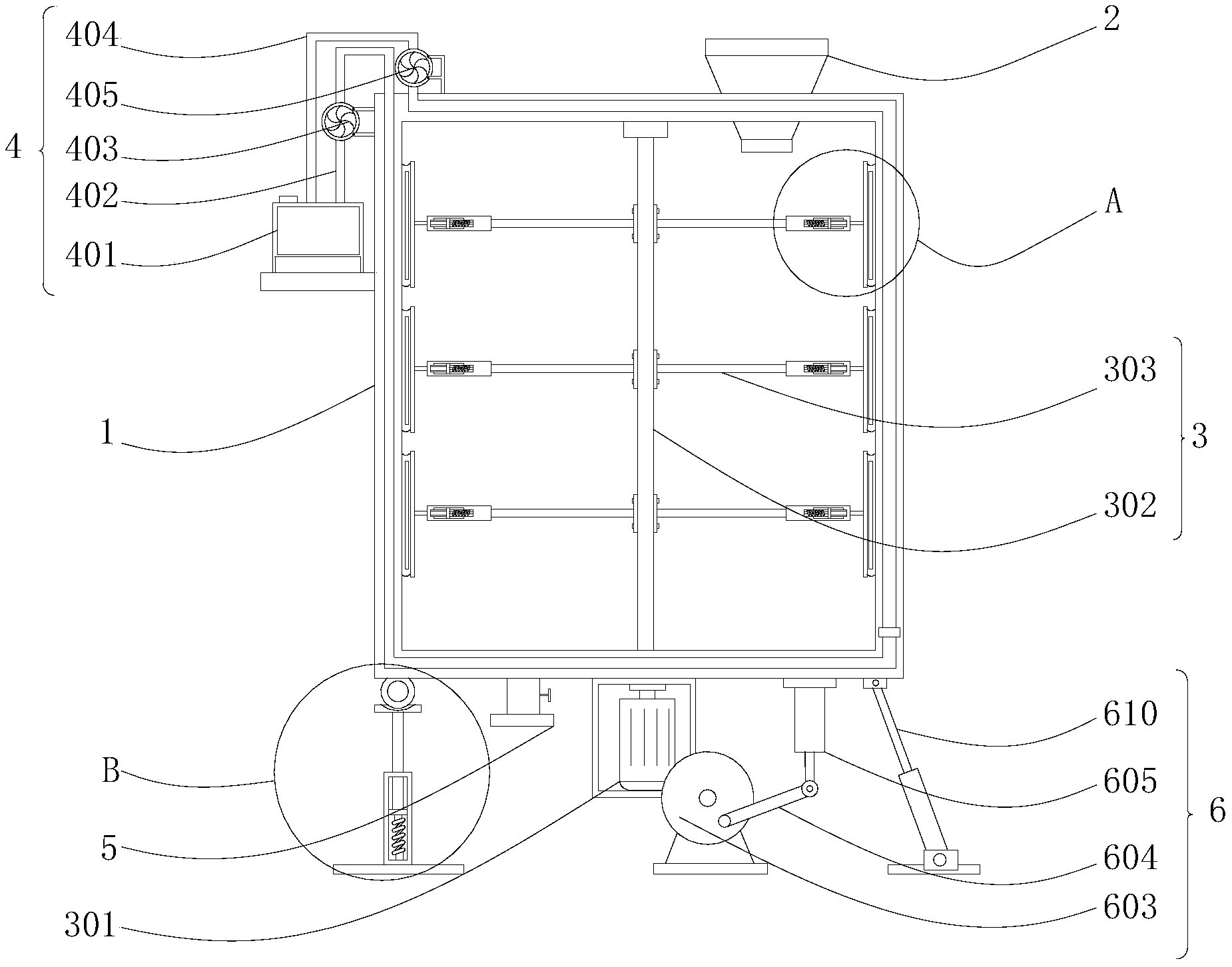 本实用新型属于粘结剂技术领域,尤其为一种瓷砖粘结剂生产防凝固装置,包括罐体、进料口、搅拌装置、加热装置、出料口和晃动装置,所述进料口安装在罐体的上端,所述搅拌装置安装在罐体的内部,所述加热装置安装在罐体的一侧及内部,所述出料口安装在罐体的底端,所述晃动装置安装在罐体的下端,所述搅拌装置包括第一电机。本实用新型通过设置搅拌装置和加热装置,避免粘结剂在罐体内壁发生凝固,且与手动刮除相比,提高了刮除粘结剂残渣的效率,降低了工人劳动强度,通过设置晃动装置,使粘结剂在加热搅拌的同时摇晃,进一步防止粘结剂发生凝固,与手动摇晃相比,更加省力效果更好。