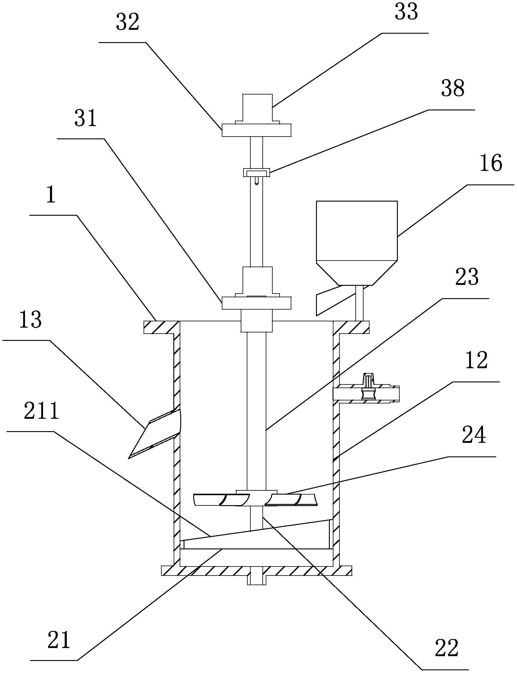 本实用新型涉及一种水泥搅拌装置,包括搅拌箱、搅拌机构和升降机构,所述搅拌箱内部设有反应腔,反应腔的侧面上方设有出料口,所述搅拌箱通过升降机构与搅拌机构连接,搅拌机构通过升降机构的传动可以在搅拌箱内上下移动,所述搅拌机构的底部设有与反应腔相匹配的升降底板,所述升降底板侧面与反应腔的内表面相贴合。本实用新型的目的在于通过设计一种水泥搅拌装置,当水泥搅拌成型后,升降机构控制移动板上移,通过升降底板使得水泥液面上升至出料口处,成型水泥从出料口中流出,从而实现无需倾倒搅拌箱也能排出水泥的效果,避免水泥泄漏堆积影响设备工作。