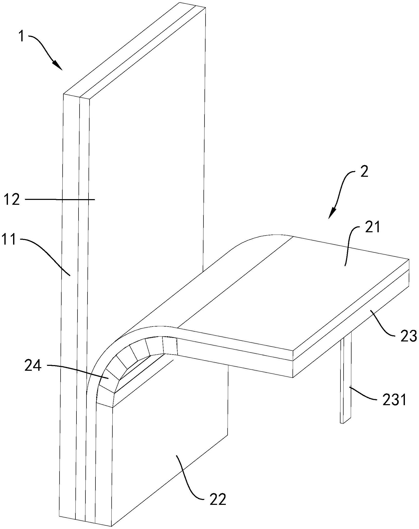 本申请涉及一种折叠壁椅,属于家具领域,包括靠背和椅座,所述椅座包括软质的椅垫,所述椅垫远离靠背的一侧底部设置有固定板,所述固定板与所述靠背之间固定相连并且所述椅垫的底部夹紧固定在固定板和靠背之间,所述椅垫远离靠背的一侧顶部固设有坐垫板,所述坐垫板与所述固定板之间设置有多根自固定板向坐垫板方向排列设置的格条,所述格条与固定板之间间隔设置,所述格条与坐垫板之间间隔设置,相邻的格条之间间隔设置,所述格条均与椅垫固定相连,所述椅垫向背离靠背的一侧方向翻转至水平状态时,格条与所述固定板之间、格条与所述坐垫板之间以及相邻的格条之间相抵接从而对所述椅垫进行支撑。本申请具有有效的节省室内空间的效果。
