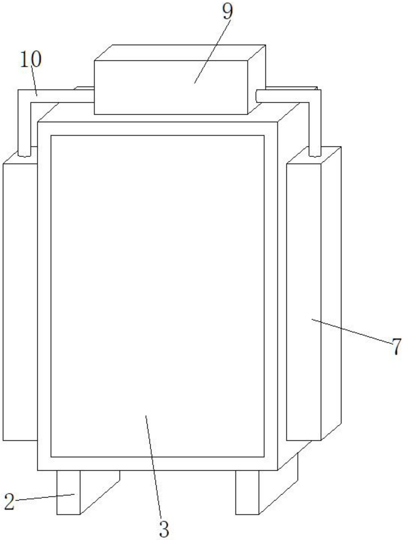 本实用新型涉及一种具有内部温度监控功能的高压配电柜,包括柜体,所述柜体的底部固定连接有一对支撑块,其前侧壁活动连接有柜门,且所述柜体的顶部内壁上固定连接有风扇,所述风扇的下方设有防护槽,所述防护槽固定连接在柜体的内壁上,且所述防护槽的内壁上固定连接有吸热板,所述柜体的两侧壁上固定连接有吸热仓,所述吸热仓内设有若干个导热块,所述导热块的另一侧贯穿柜体和防护槽的侧壁,并固定连接在吸热板的侧壁上,所述柜体的顶部固定连接有存水仓,所述存水仓的顶部固定连接有加水管,且所述存水仓的两侧与吸热仓之间固定连接有导水管,本实用新型具有降温效果好等特点。