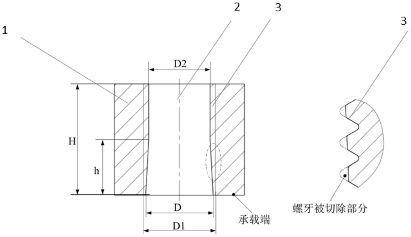 本实用新型涉及一种抗疲劳螺母、风力发电机叶根连接结构,该螺母包括呈柱状的螺母本体,螺母本体的中心处设有便于与螺栓连接的内螺纹孔,内螺纹孔底部内螺纹的牙为做切牙高处理的牙。与现有技术相比,本实用新型通过对螺母的内螺纹进行切牙高处理,降低螺栓与螺母啮合的前几扣的内螺纹的刚度,从而减小螺栓前几颗螺牙承受的载荷,可以提高螺栓螺纹连接的极限强度和疲劳强度。