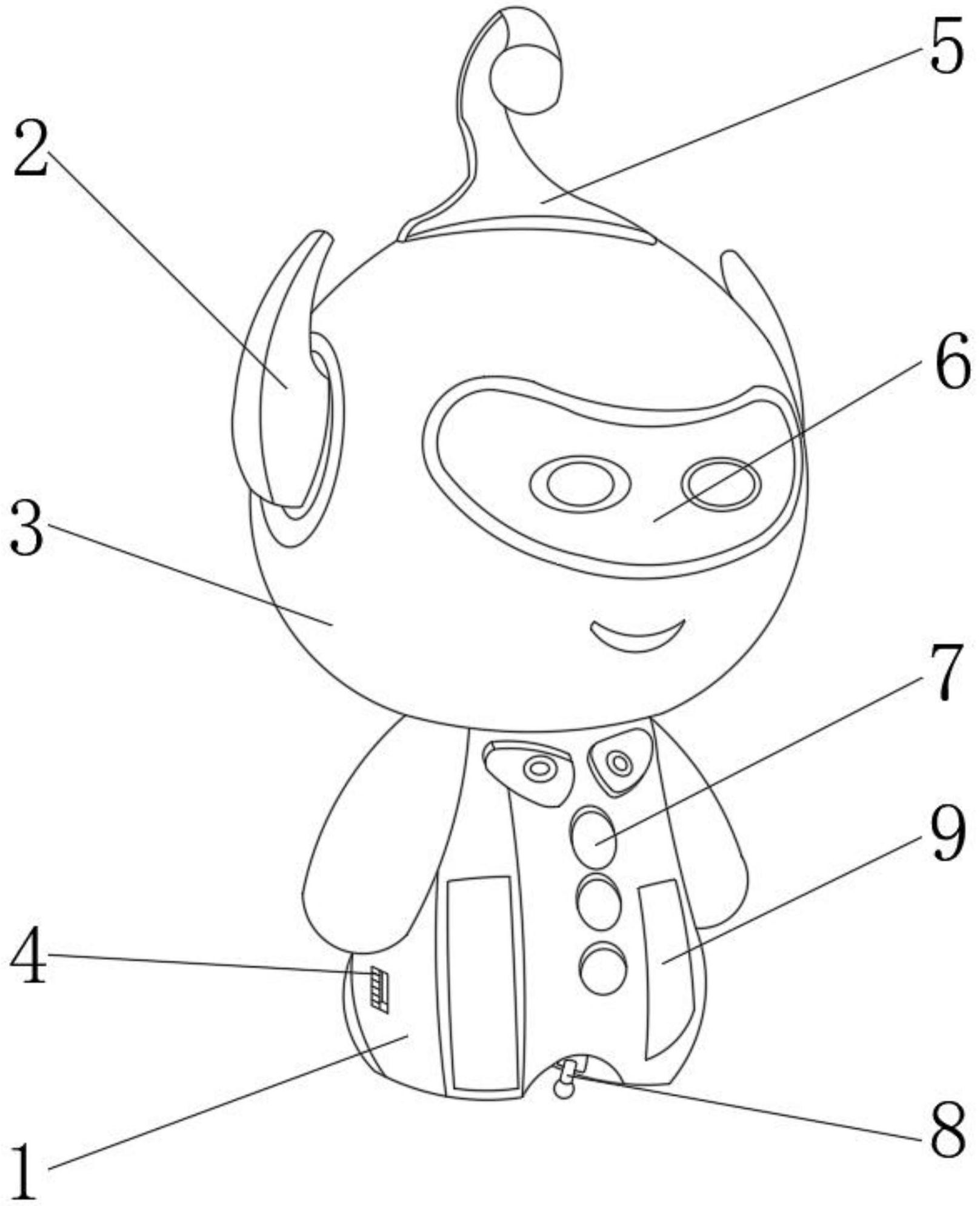 本实用新型公开了一种安抚睡眠的早教玩具,包括玩具主体,所述玩具主体的上端外表面固定连接有助眠机器人,所述玩具主体的一侧设置有充电口,所述玩具主体的前端设置有控制面板,所述玩具主体与助眠机器人的外表面均设置有直贴式防撞保护机构,所述玩具主体的下端设置有伸缩式柔和灯光助眠机构,所述助眠机器人的两侧设置有可活动耳朵。本实用新型所述的一种安抚睡眠的早教玩具,设有伸缩式柔和灯光助眠机构与直贴式防撞保护机构,能够方便更好的助眠,增加儿童的睡眠质量,减轻大人的压力,还可以方便对儿童进行保护,缓冲防撞的效果优异,可以更换,图案多样,更加实用,带来更好的使用前景。