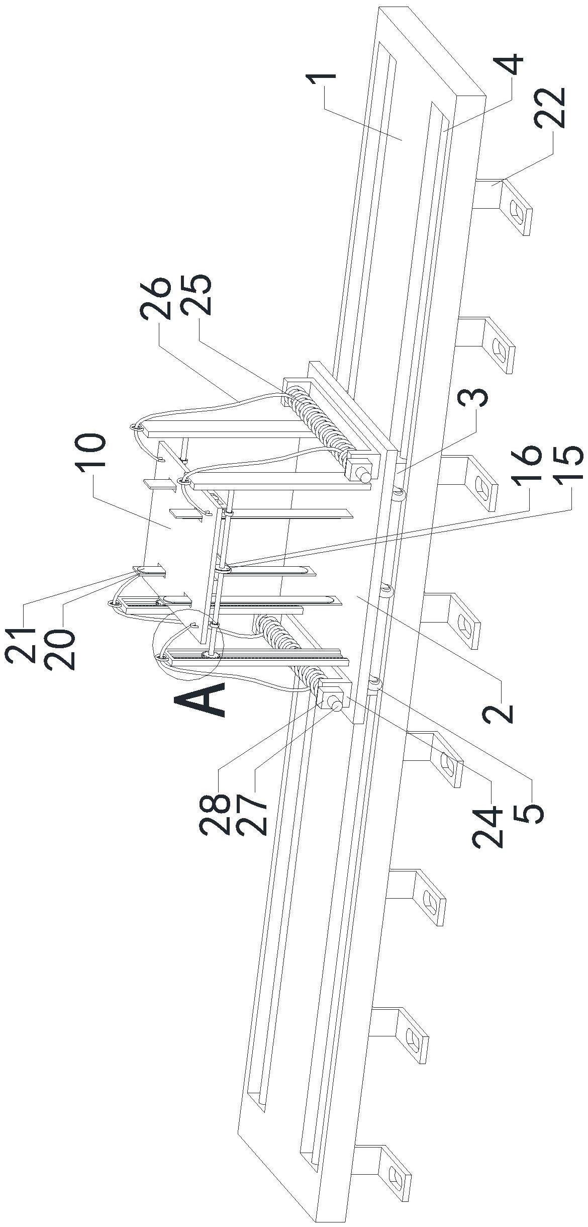 本实用新型涉及自动送纸的技术领域,特别是涉及一种飞达送纸调整机构,其可以随着纸张的不断输送,调整纸张的高度,避免对纸张输送效果的影响,并且可以根据不同的使用要求,调整纸张的输送位置,提高实用性;包括底座、移动架、两组滑块、两组丝杠、多组滑轮、四组限位轨道、四组齿条、四组旋转齿轮、两组旋转轴、升降平台、第一电机、第一减速机、传动轴、传动齿轮、两组从动齿轮、传动链条和安装架,升降平台上设置有四组连接杆,并在四组连接杆上分别设置有四组固定环,两组从动齿轮分别套装固定至两组旋转轴上,并且传动齿轮和两组从动齿轮通过传动链条传动连接,多组滑轮均安装在移动架底端,并且多组滑轮均与底座顶部接触。