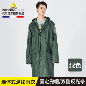 代尔塔加厚加长款连体式荧光反光雨衣透气弹性袖口连体防水雨披男